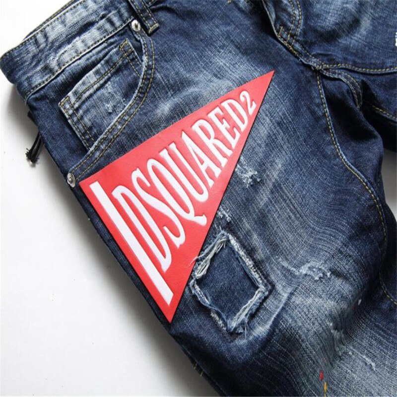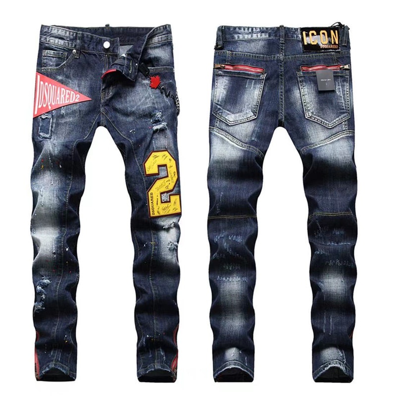 2021 Trend Dsquared2 Fashion Trend Style Old-Fashioned Jeans Men'S Zipper Decoration Alphanumeric Pattern Slim Pants