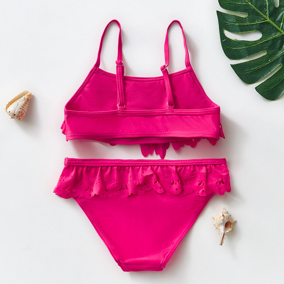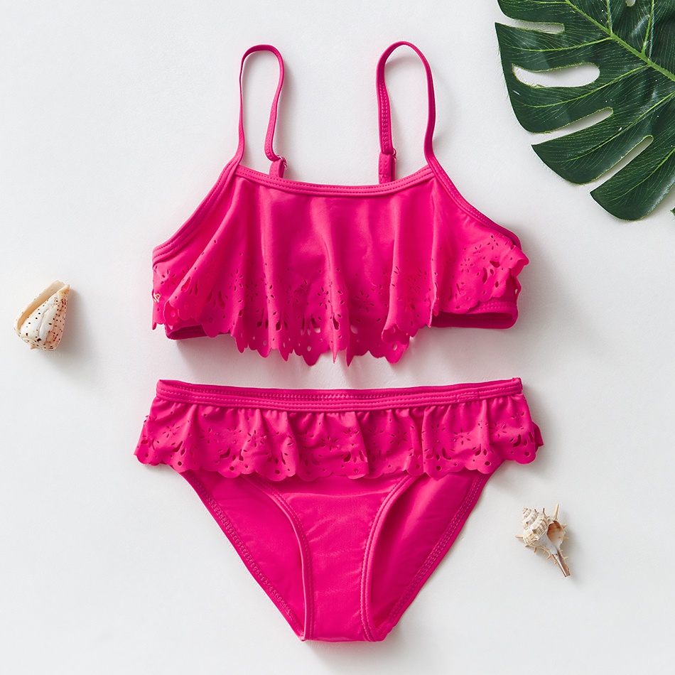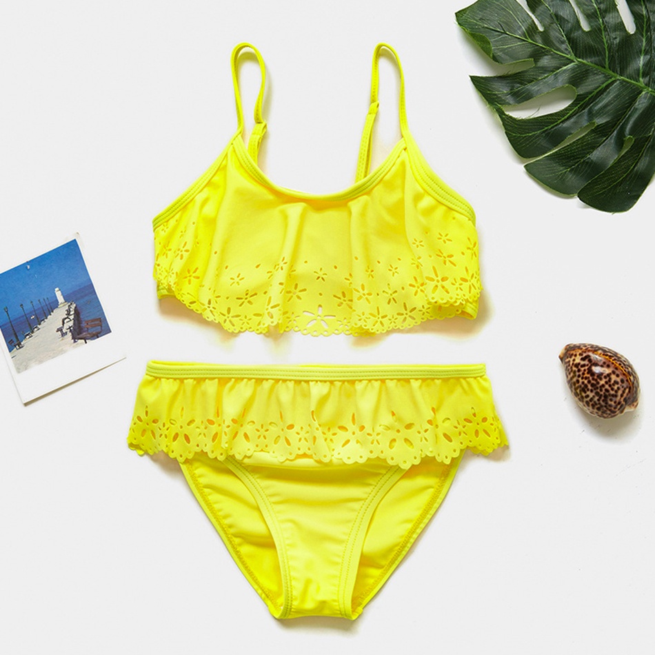 2022 Girls Two-pieces Bikini Swimsuit Ruffle Style Girls Swimwear Hollow Children's Swimwear For 4-14years Girls Swimsuits