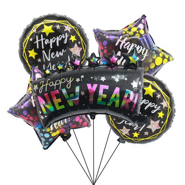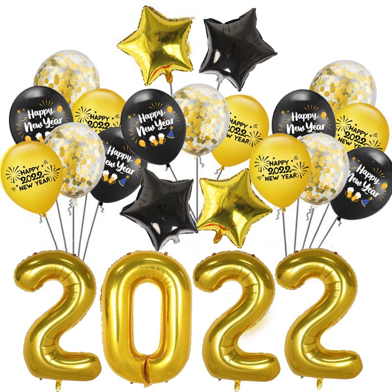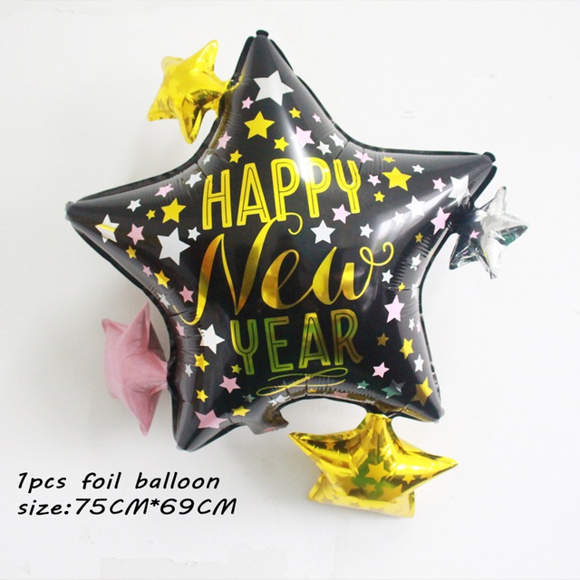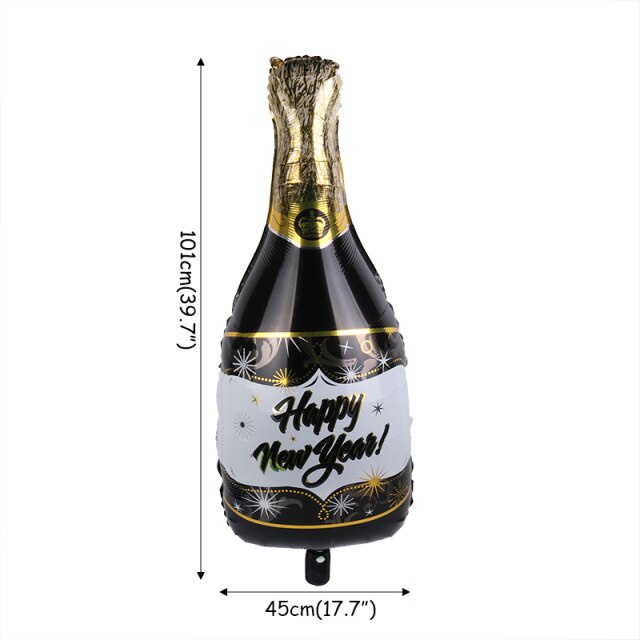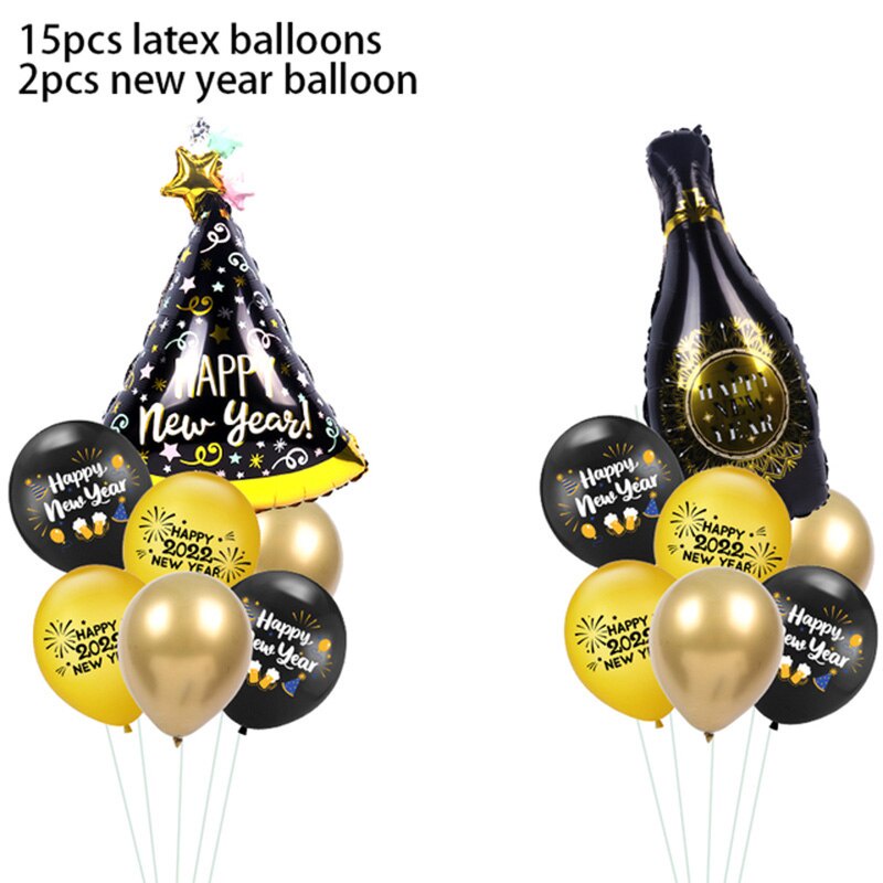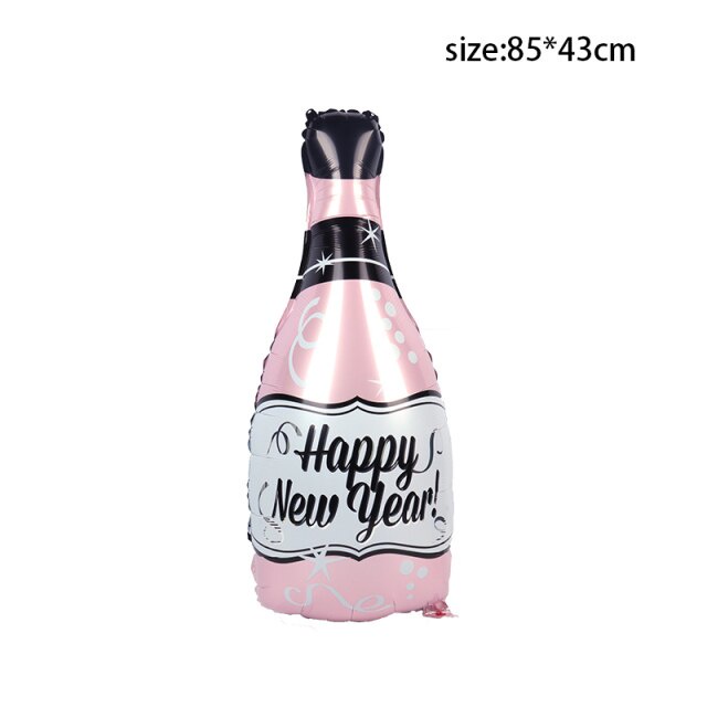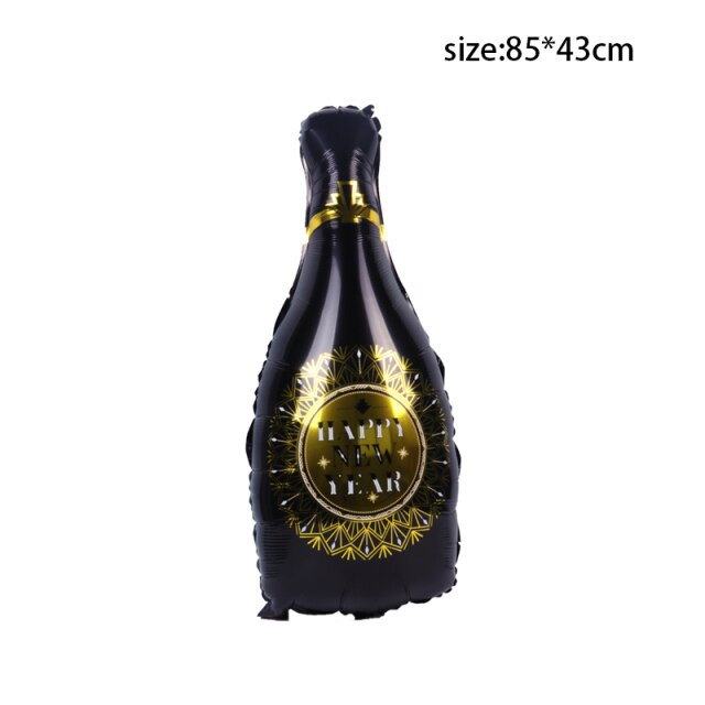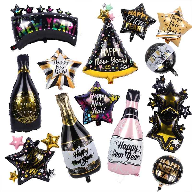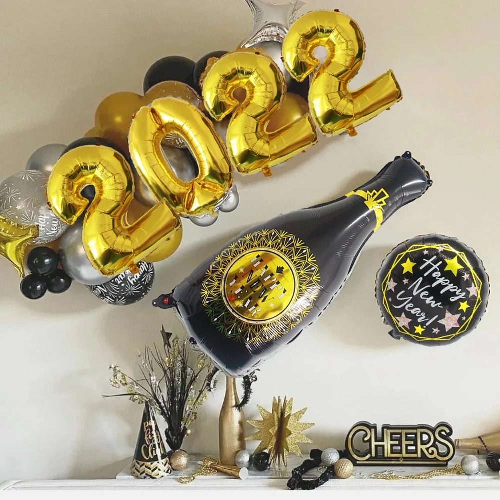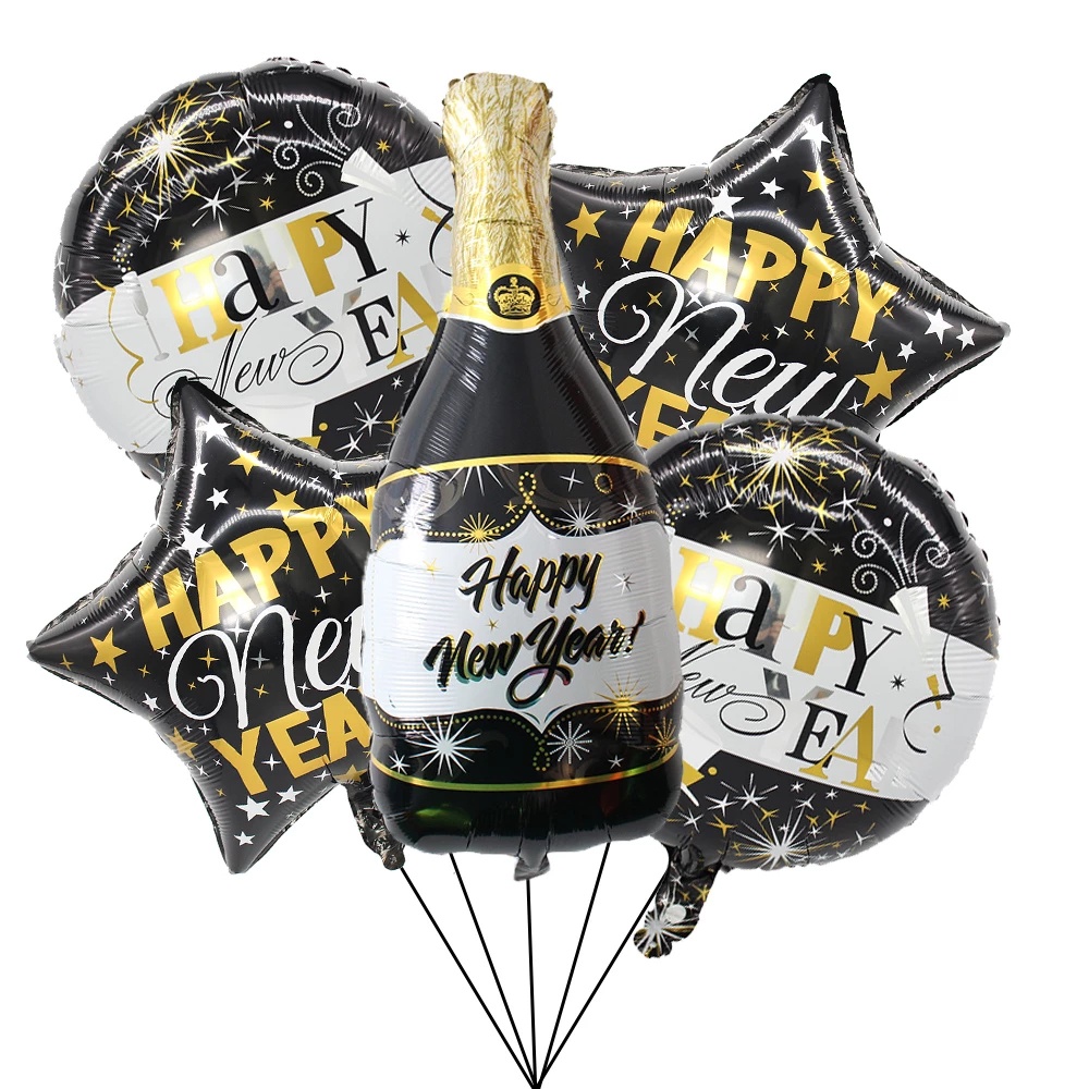 2022 Happy New Year Balloons Decor Set Star Champagne Bottle Balloons Round Foil Balloon New Years Eve Party