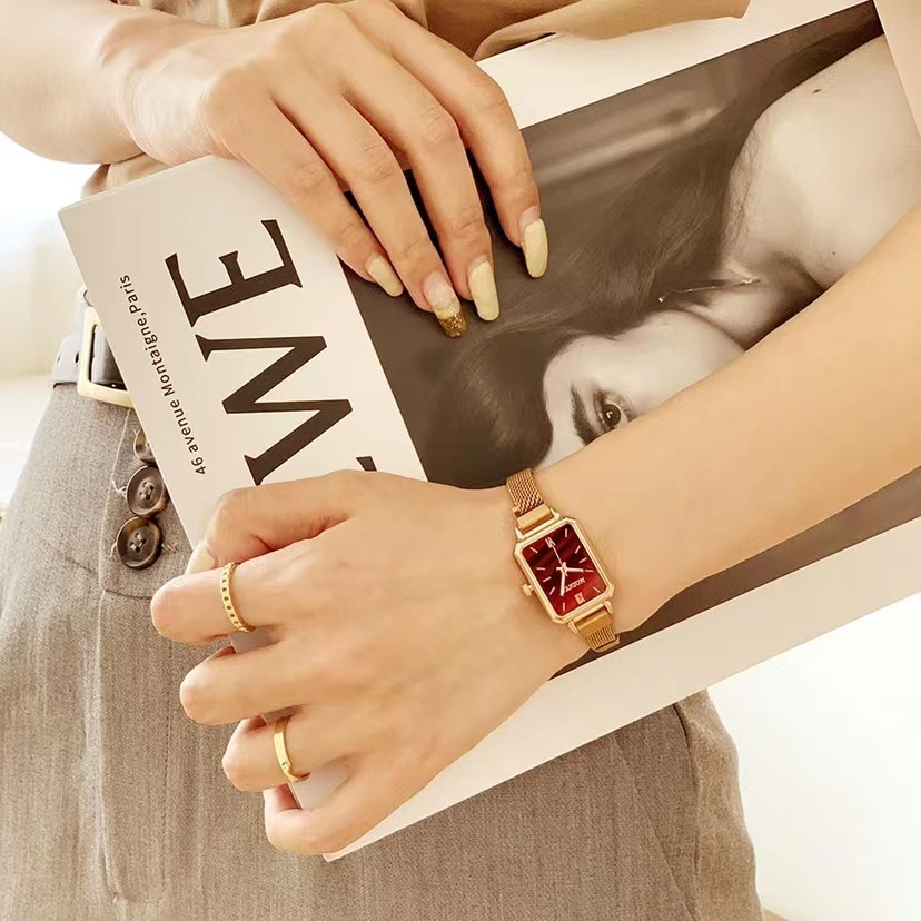 2022 Luxury Women Metal Classy Rosegold Rectangle Magnet Quartz Relo Watch W0191