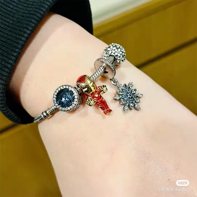 2025 Pandora Silver S925 Brand New "Avengers" Iron Man Charm Bangle Beading Jewelry Gift DIY