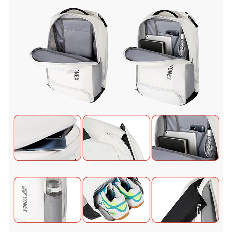 2022 White YONEX Badminton Racket Backpack Waterproof Sports Bag With Shoe Compartment Ergonomic Design