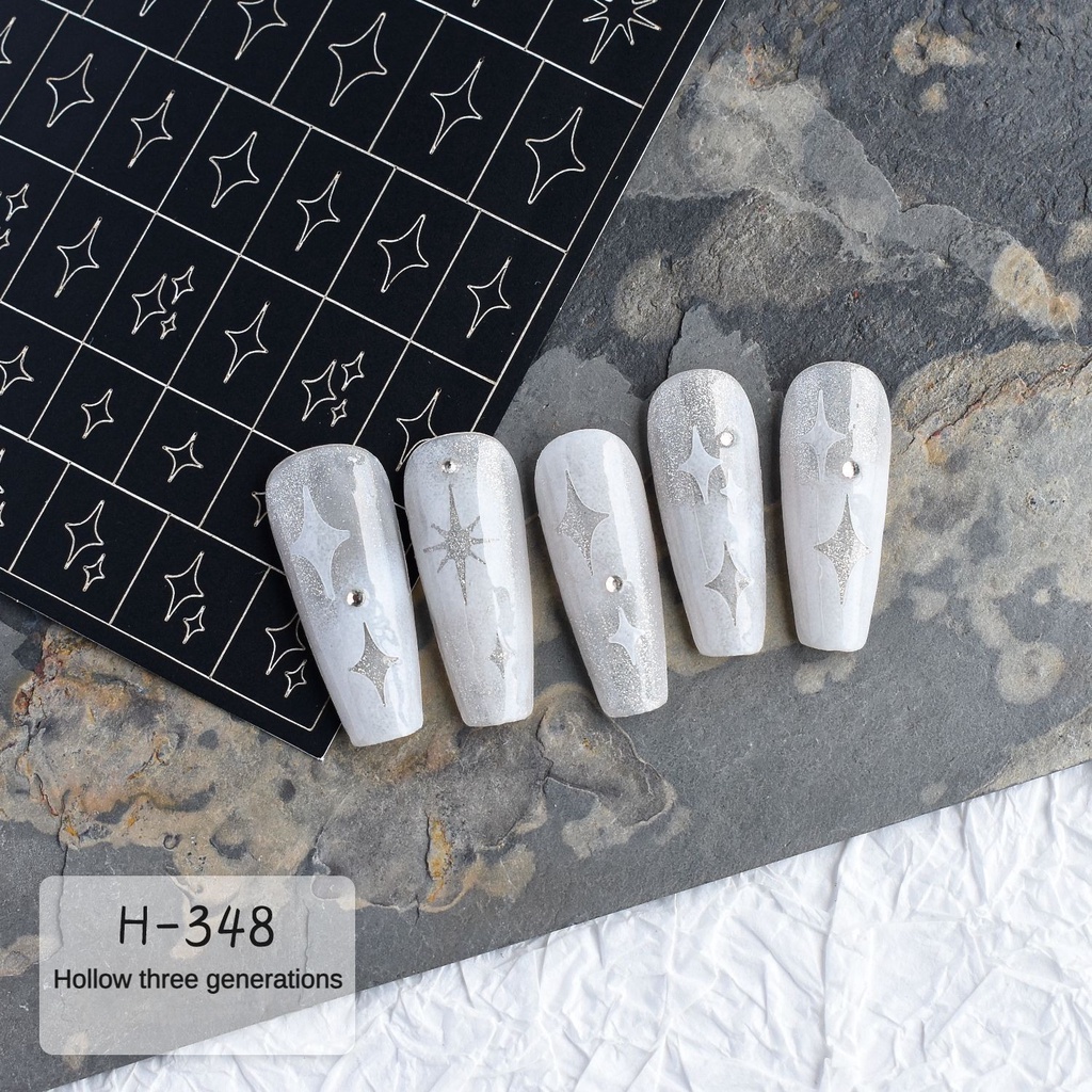 2023 Hollow Ink Painting Butterfly Pentagram Starburst Love Flame Nail Art Sticker / Hollow-out third-generation small group case auxiliary nail sticker (with adhesive)