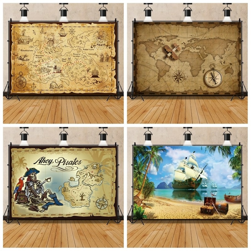 2023 NEW Pirate Backdrops For Photo Old Treasure World Map Birthday Party Baby Portrait Photographic Background Photocall Photo Studio