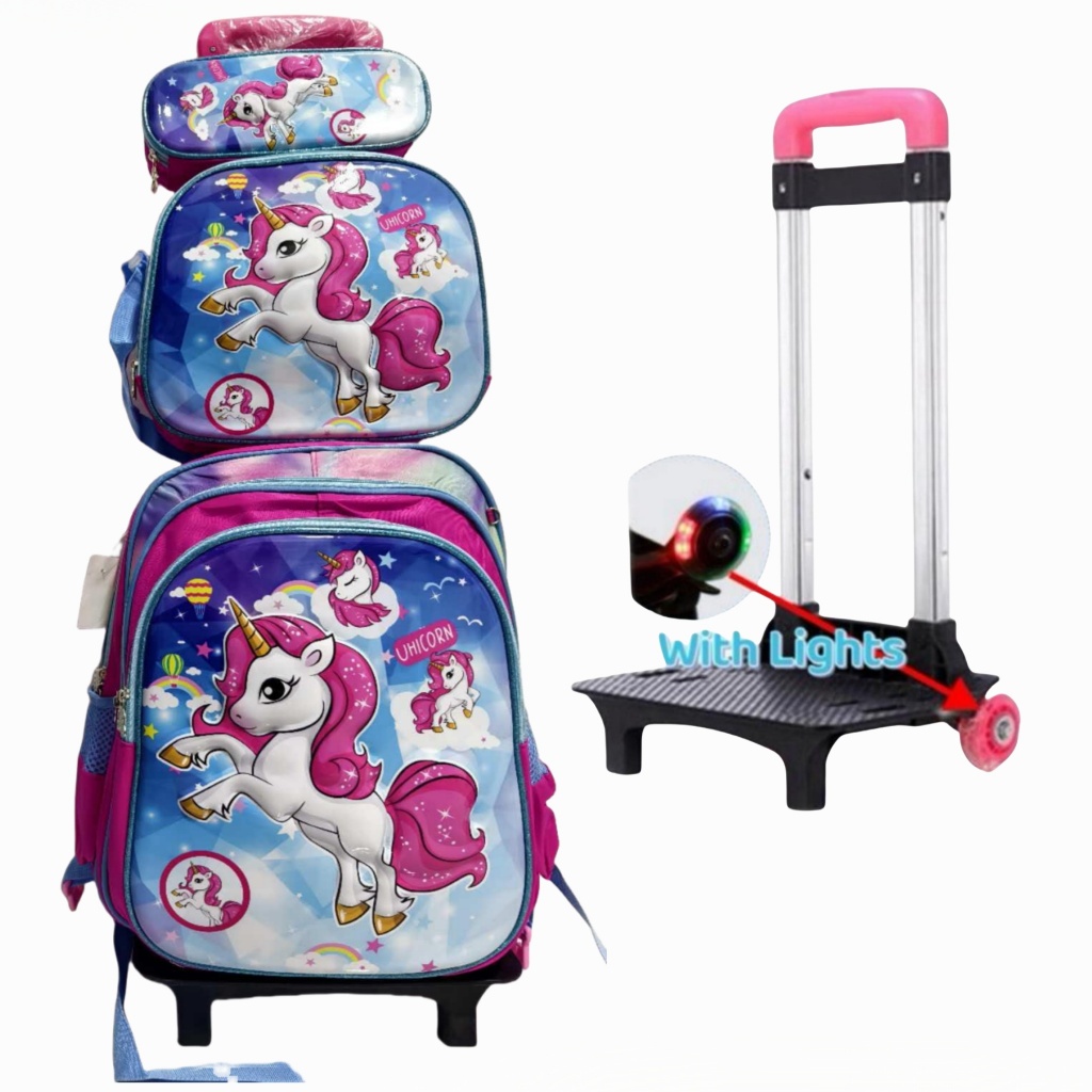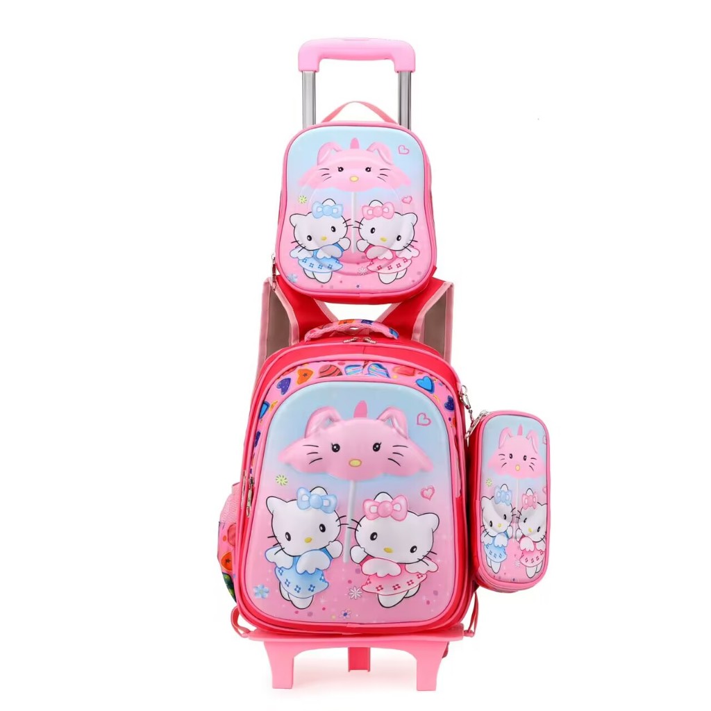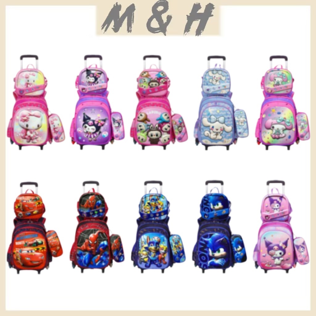 2025 New Design 6D Character Trolley Bag 3in1 Matibay Waterproof School Bag For Kids trolleybag