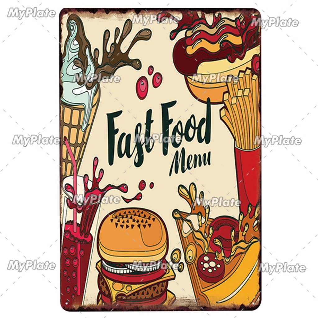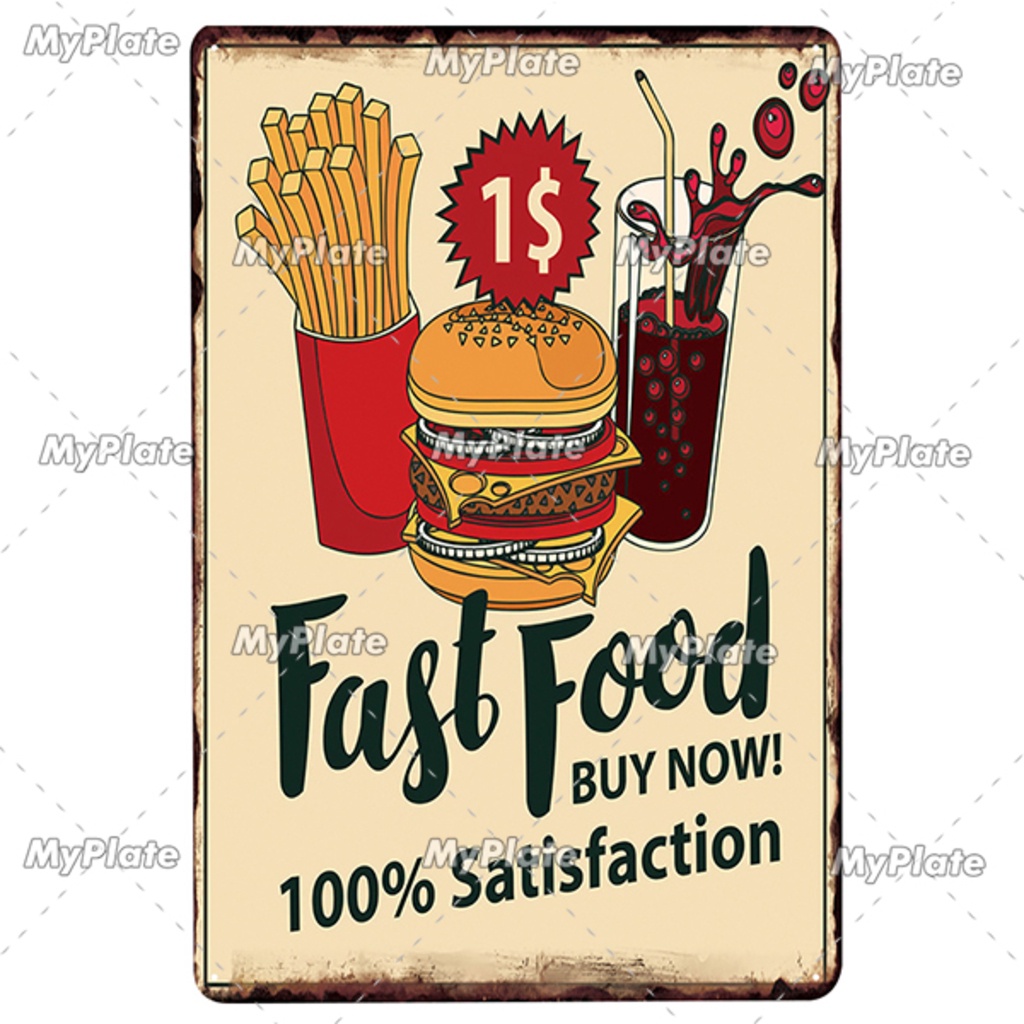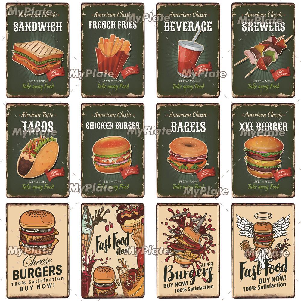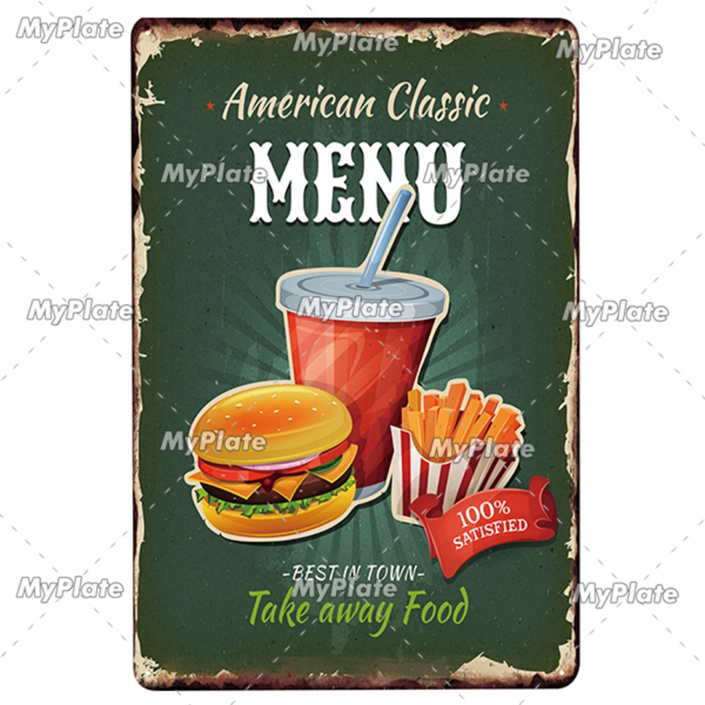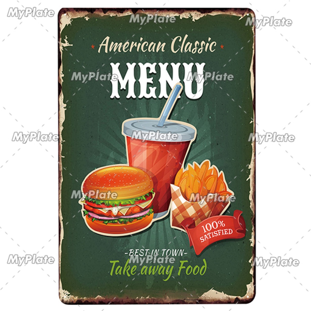 2024 American Food Metal Signs Vintage Food Metal Signs Wall Decor para sa Kusina Coffee Shop Diner BURGER Fast Food Metal Signs
