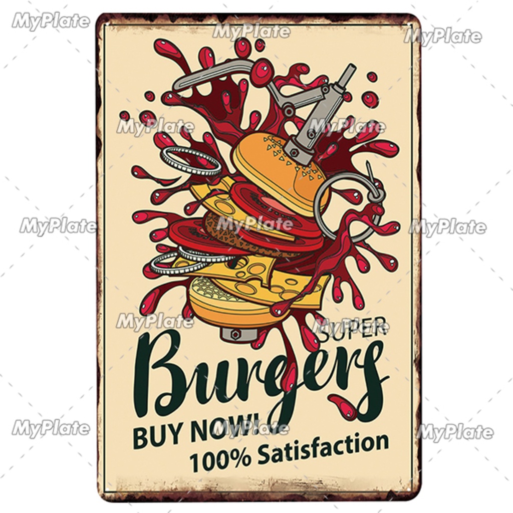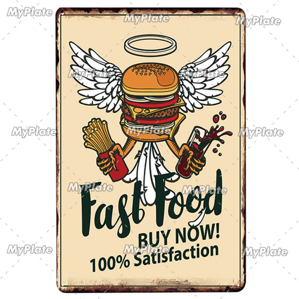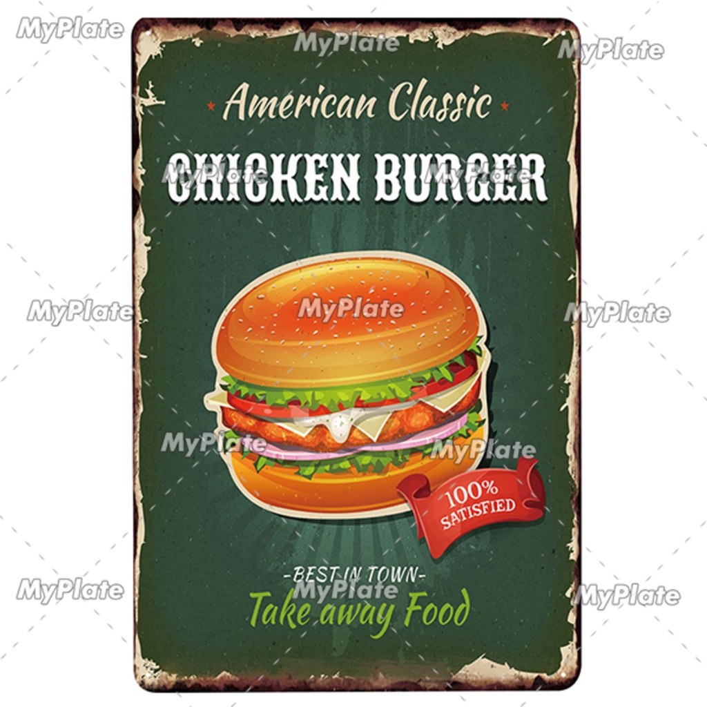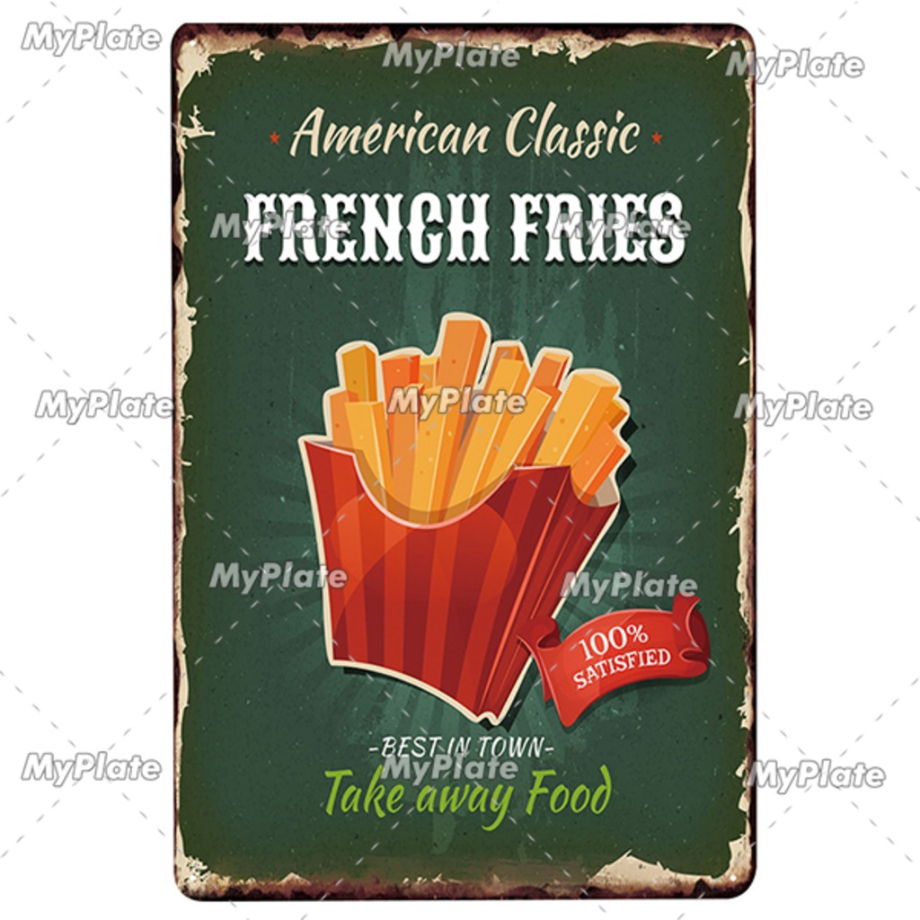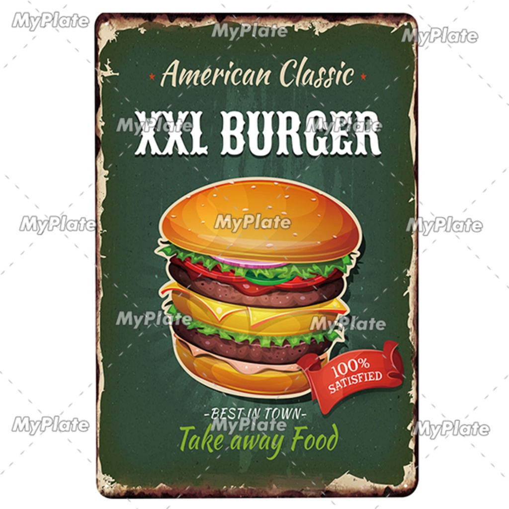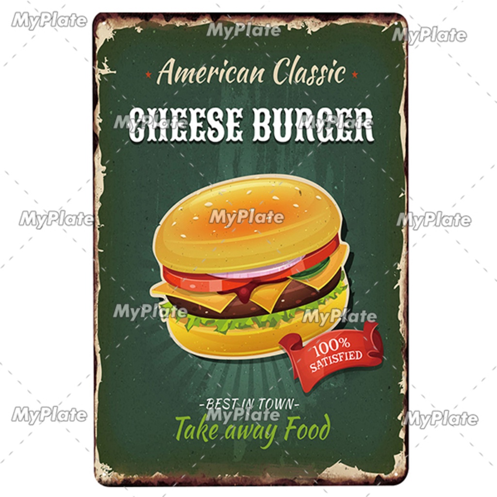 2024 American Food Metal Signs Vintage Food Metal Signs Wall Decor para sa Kusina Coffee Shop Diner BURGER Fast Food Metal Signs