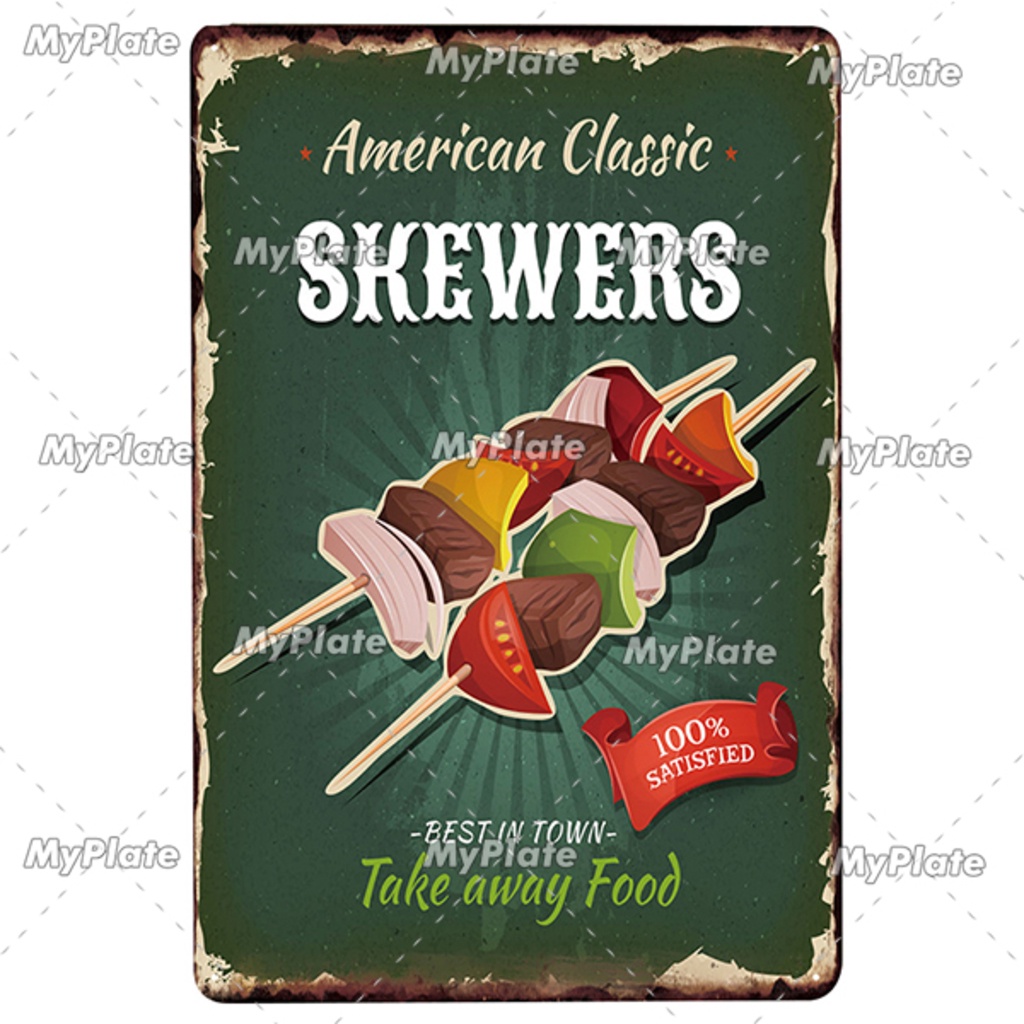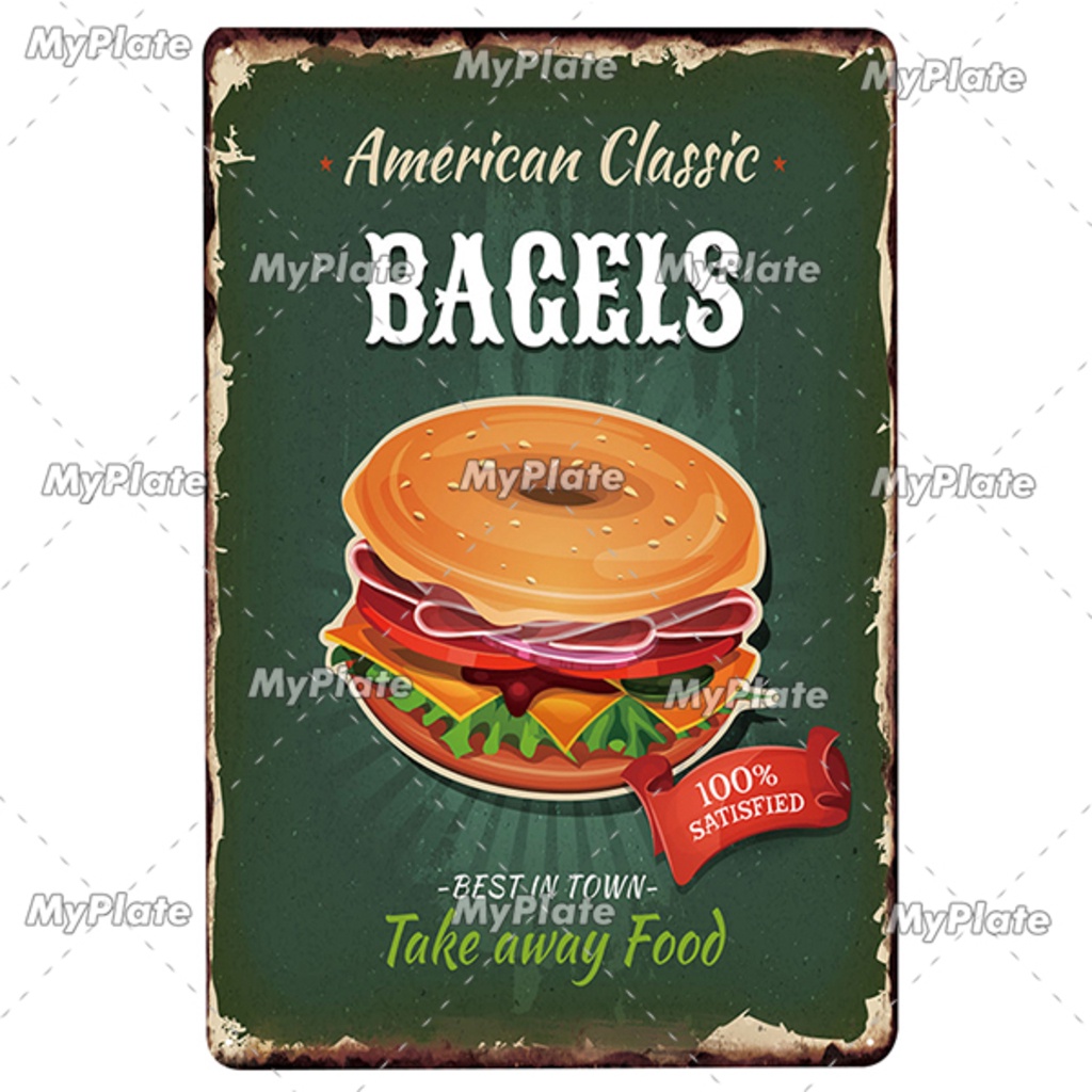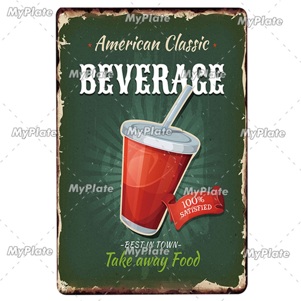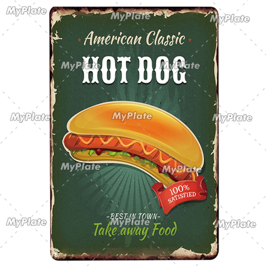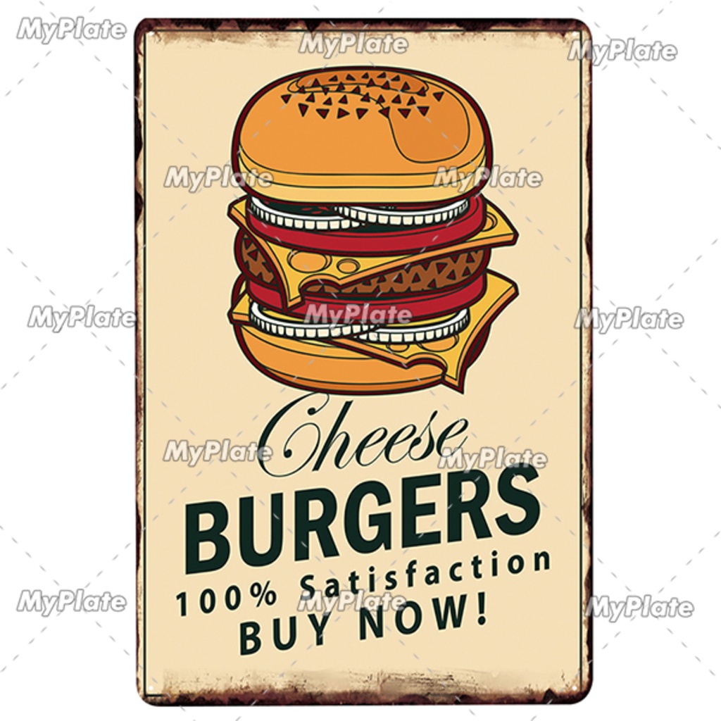 2024 American Food Metal Signs Vintage Food Metal Signs Wall Decor para sa Kusina Coffee Shop Diner BURGER Fast Food Metal Signs