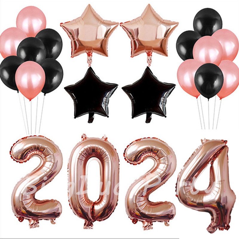 2024 Happy New Year Balloons Party Decorations 32inch Gold Blue Pink Number 18"Star Balloon 2024 Party Decorations Set