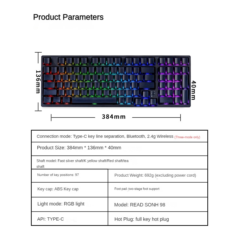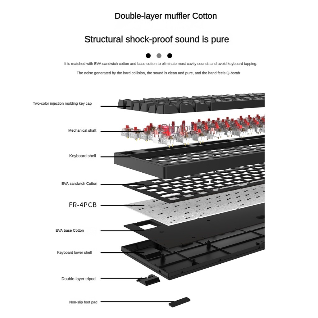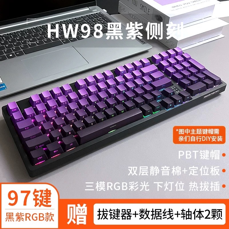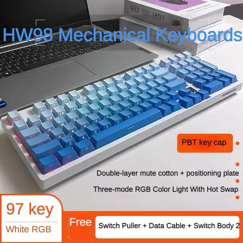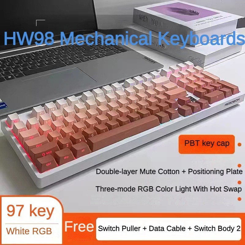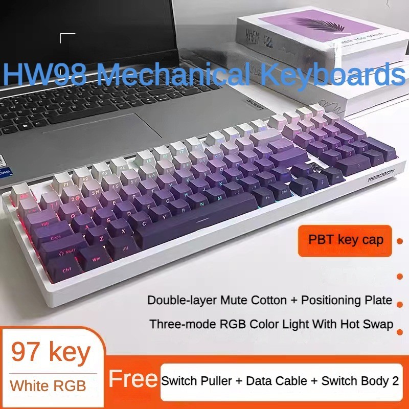 2024 Lychee Gaming HW98 Key Customized Mechanical keyboard 2.4G Wireless Bluetooth Three-mode Hot Swap computer e-sports RGB mahjong sound kit