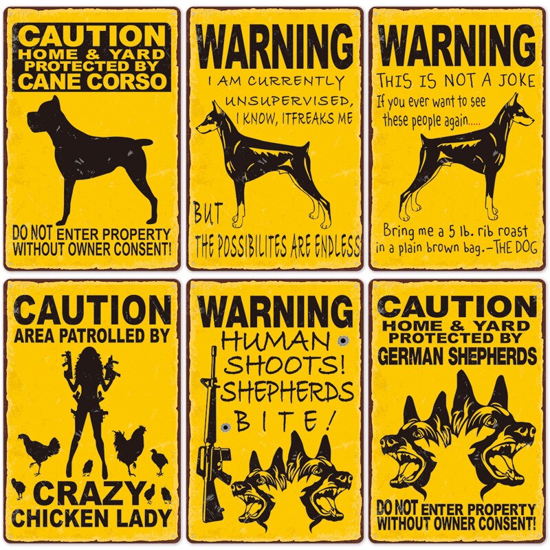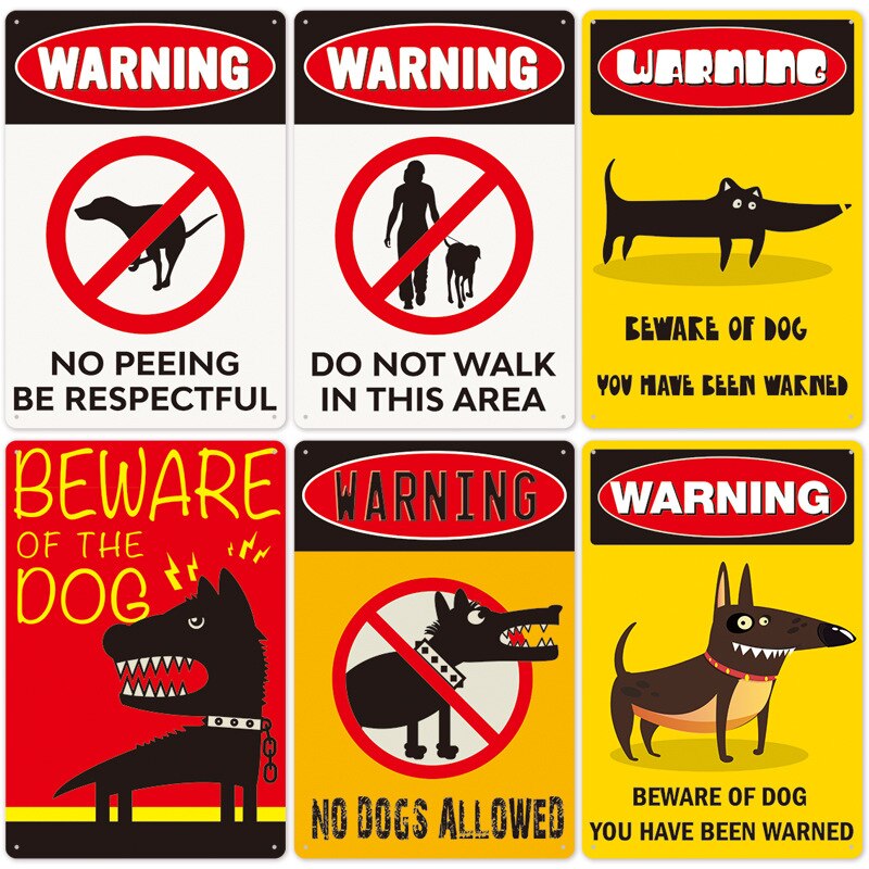 2024 Mag-ingat Mag-ingat sa Mga Aso Mga Dilaw na Metal Sign Mga Pampublikong Karatula Mga Poster ng Pet Store Mga Pin Up Tin Sign Mga Karatula ng Metal Mga Karatula