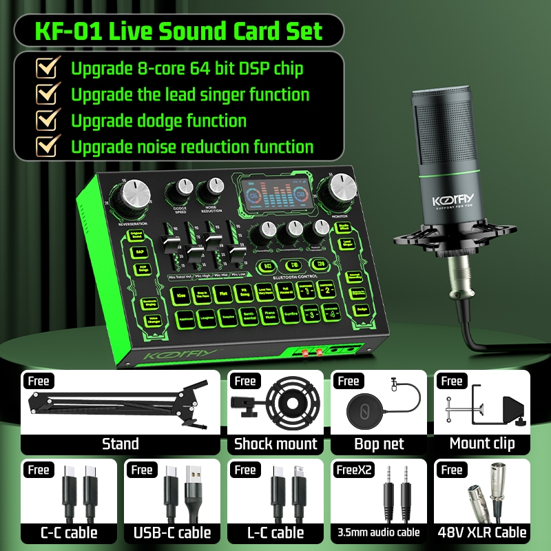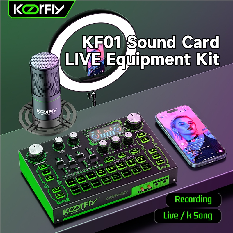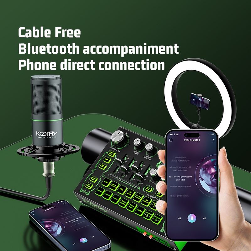 Koorfly KF01 Sound Card DJ Mixer 48V Microphone Set Custom Sound Effect Bluetooth Sound Mixer