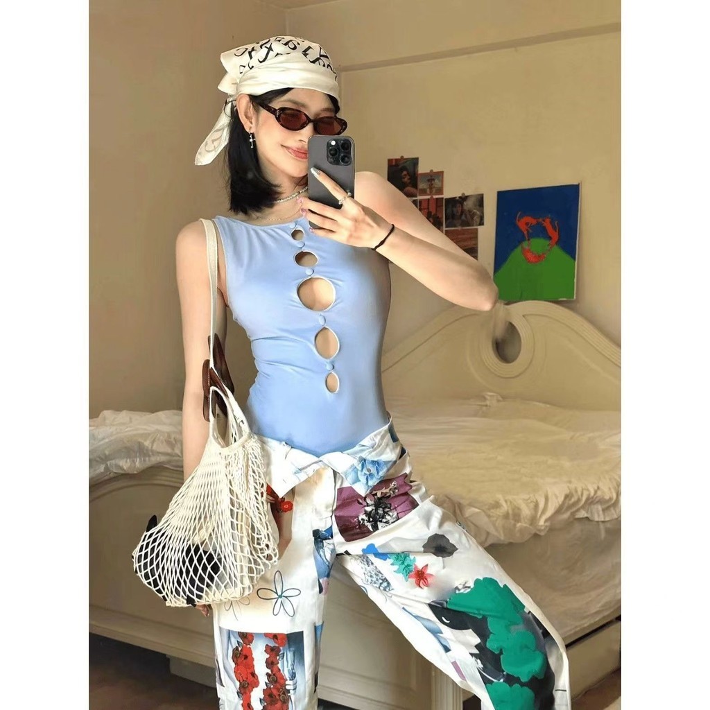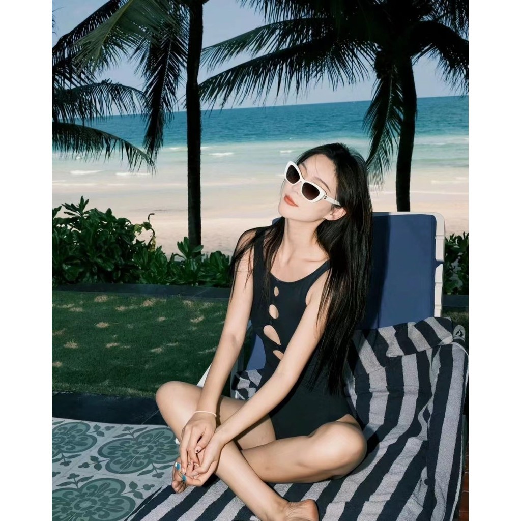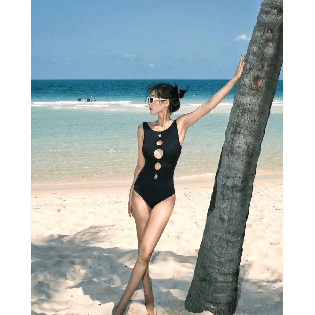 2024 New Women Swimsuit Korean Simple Plain Swimsiut Sexy Hollow One Piece Swimsuit