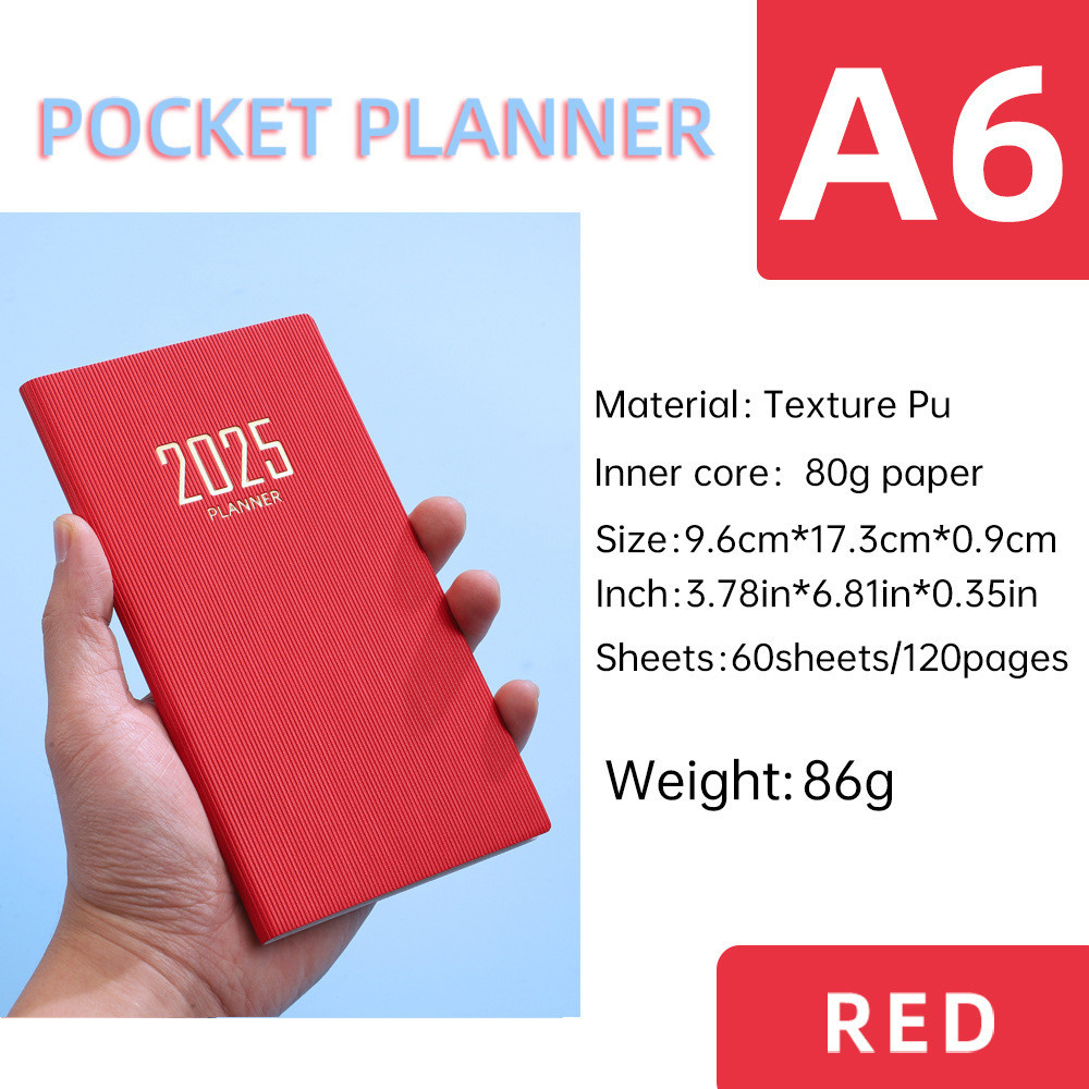 2025 A6 Pocket Notebook 365 Days Notepad Diary Notebook Day Week Month Planner Office School Stationery