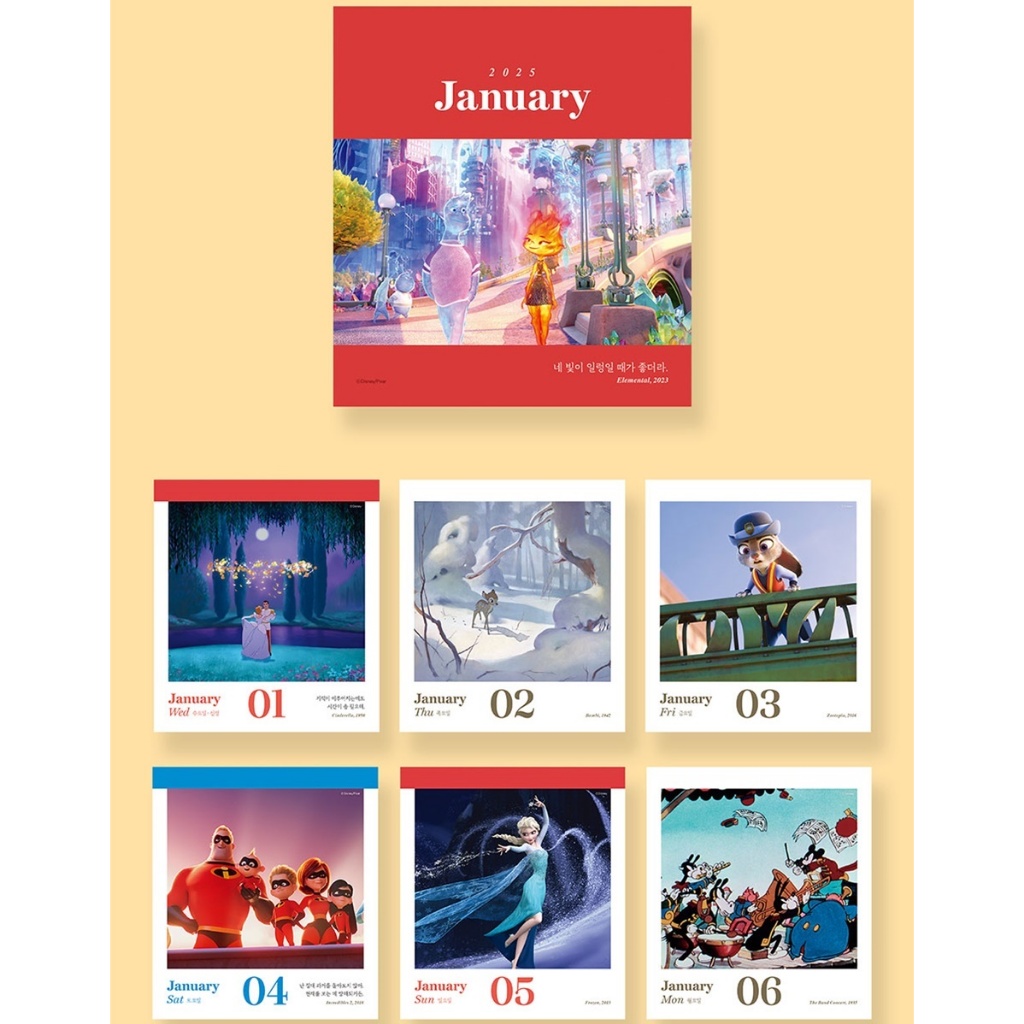 2025 Disney 365 Days Daily Calendar [Spiral Bound] / Korean Cute Desk Calendar / Disney characters Compact Calendar / Mickey Mouse / Frozen / Inside Out / Disney gifts / Year-round