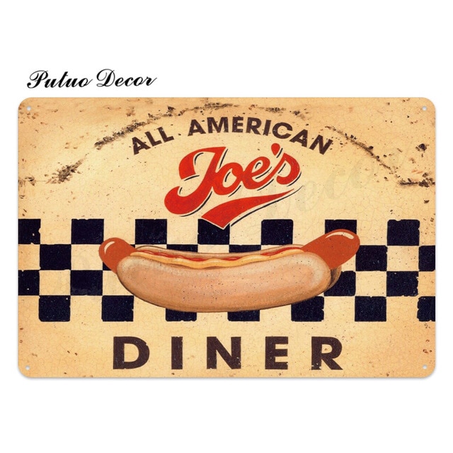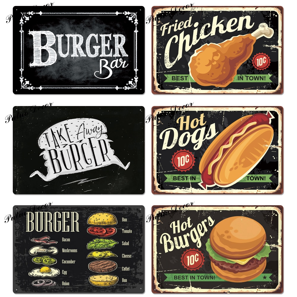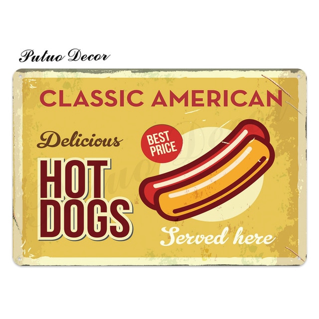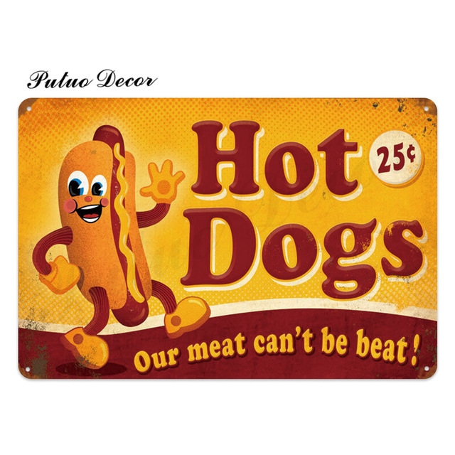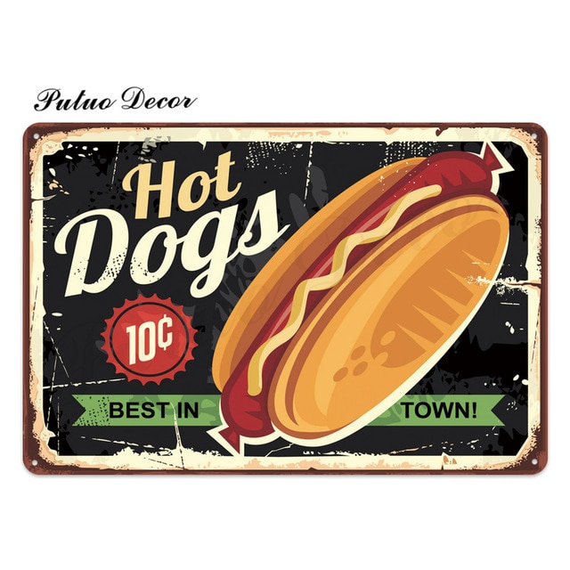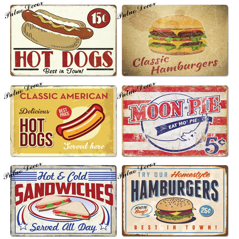 2025 Fast Food Tin Signs Vintage Metal Signs Vintage Metal Signs Wall Decor Hot Dog para sa Kusina Coffee Shop Diner Metal Signs (20x30cm)