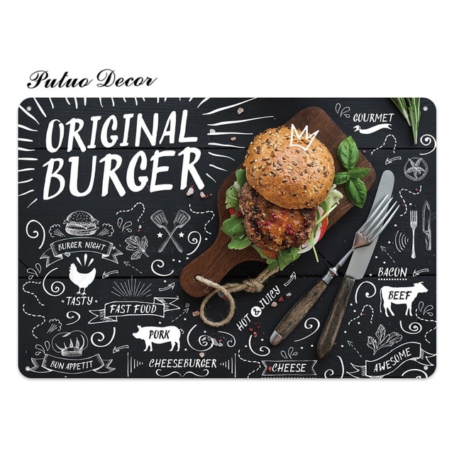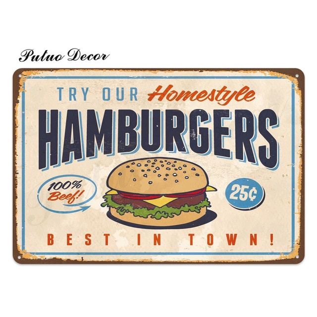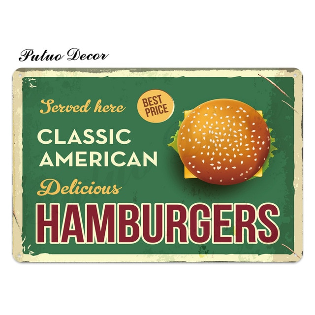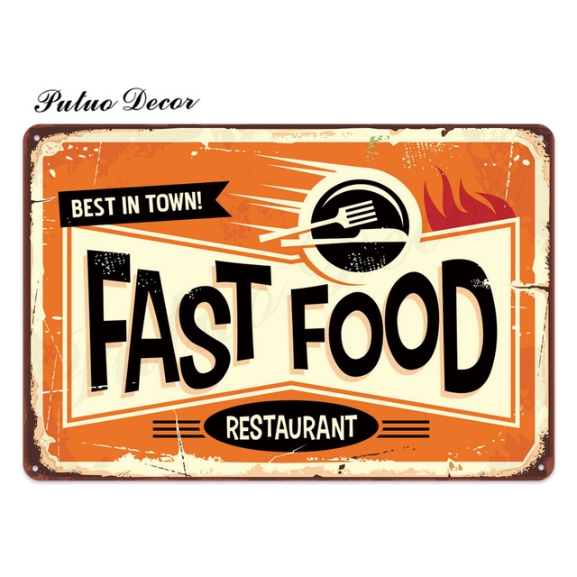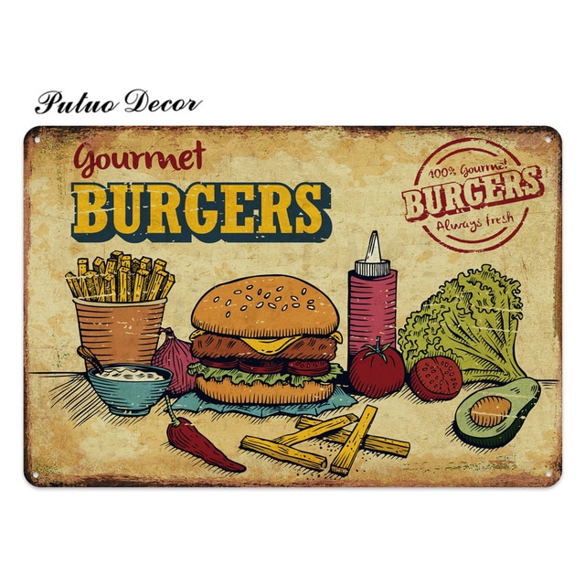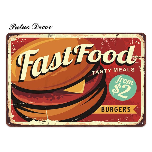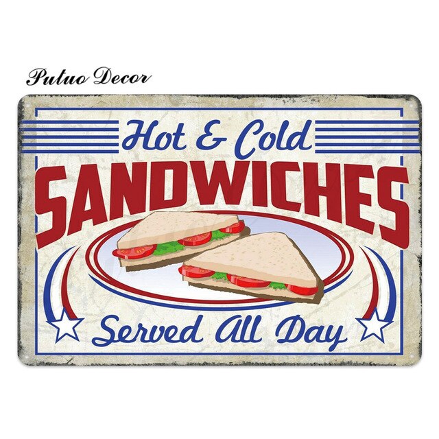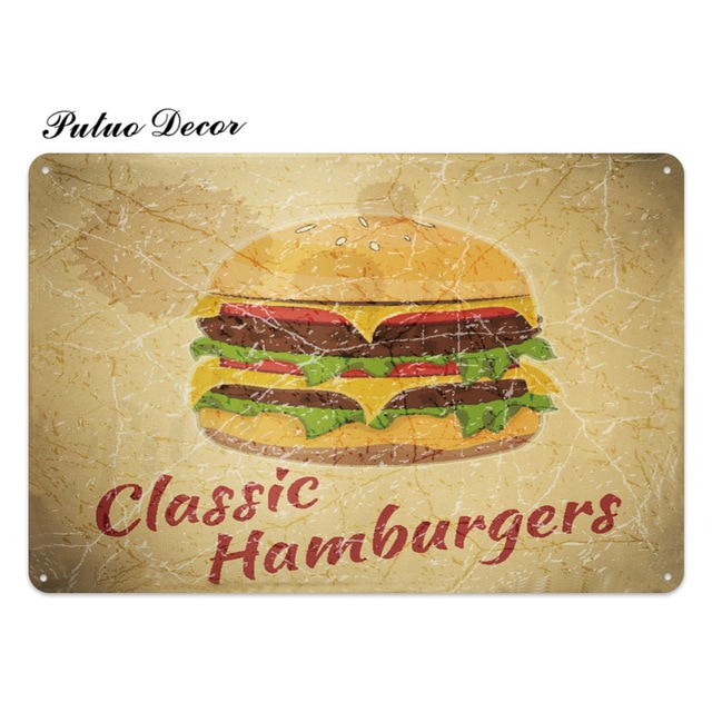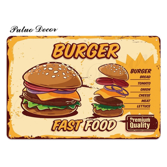 2025 Fast Food Tin Signs Vintage Metal Signs Vintage Metal Signs Wall Decor Hot Dog para sa Kusina Coffee Shop Diner Metal Signs (20x30cm)