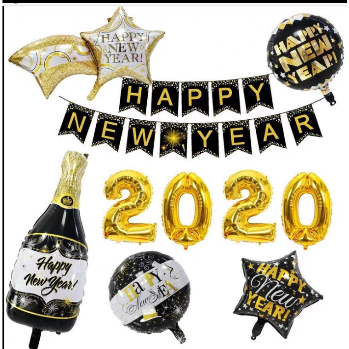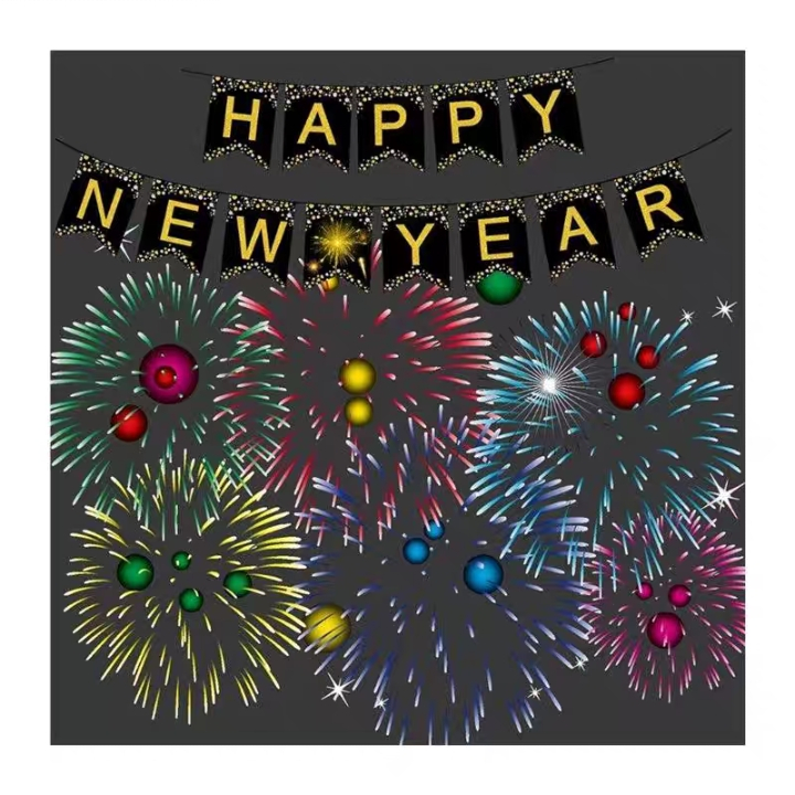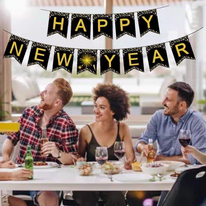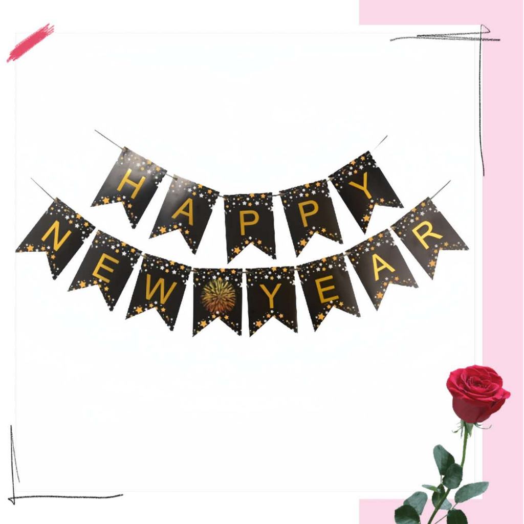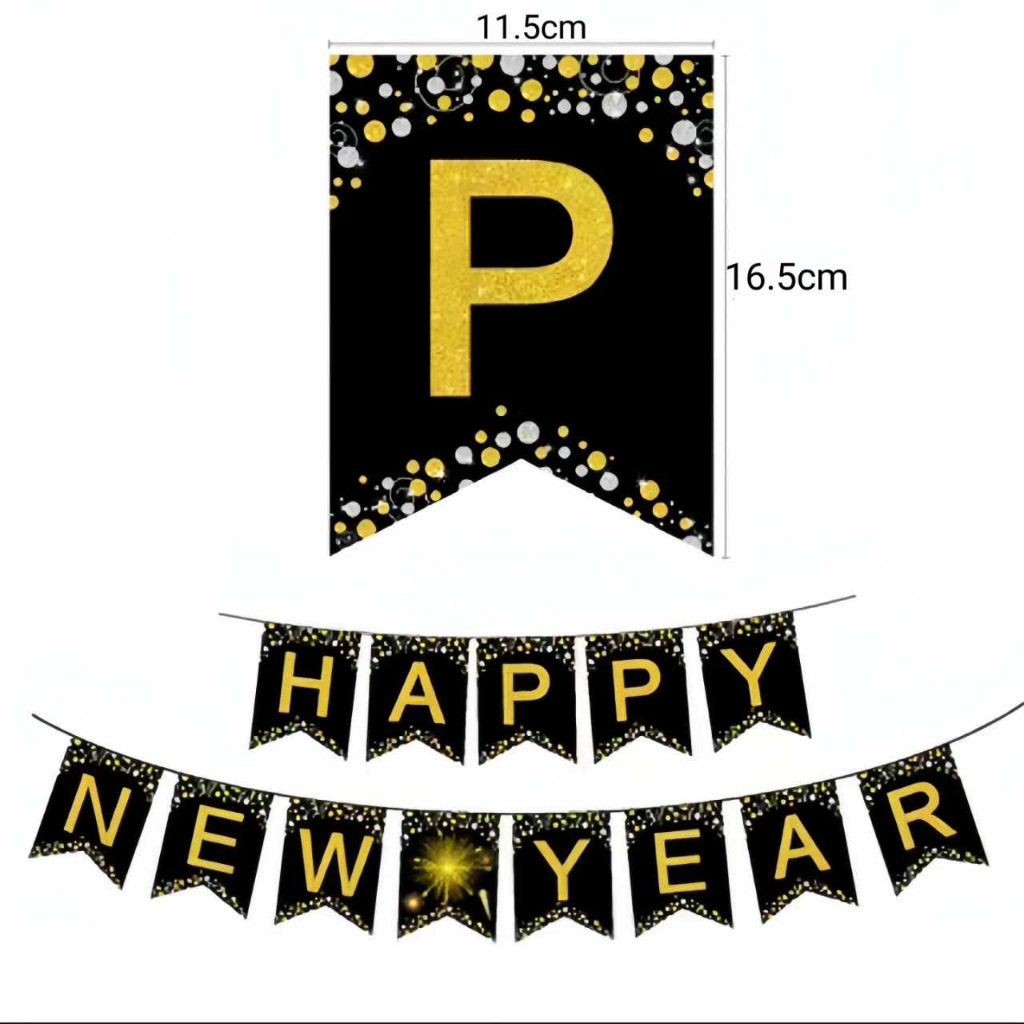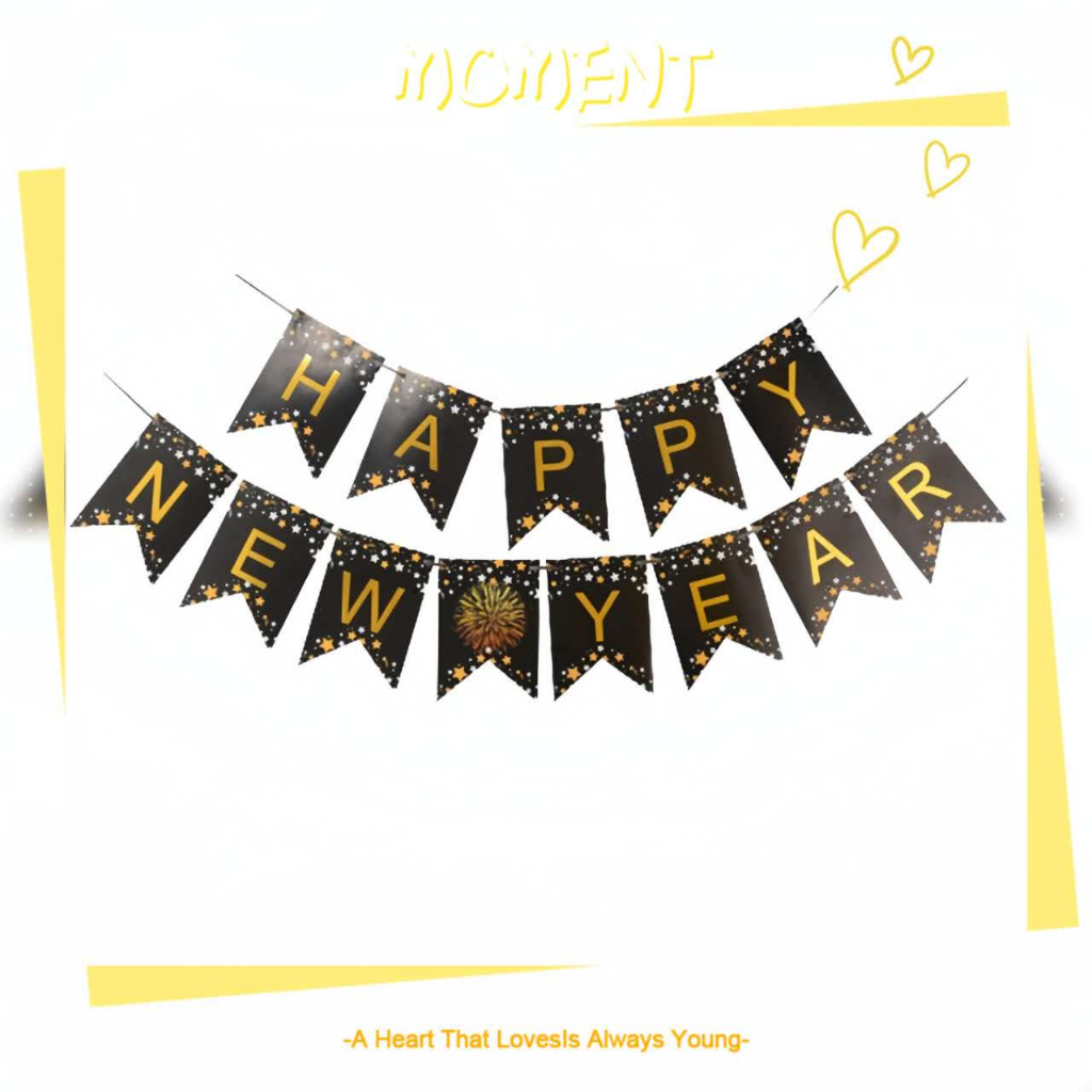 2026 HAPPY NEW YEAR Gold letters Star party decorations cardboard banner set w/string