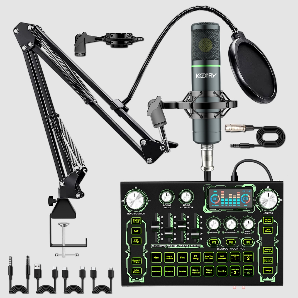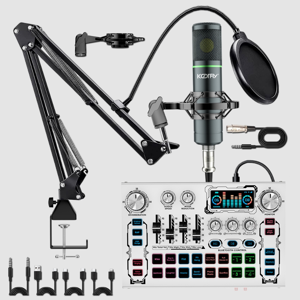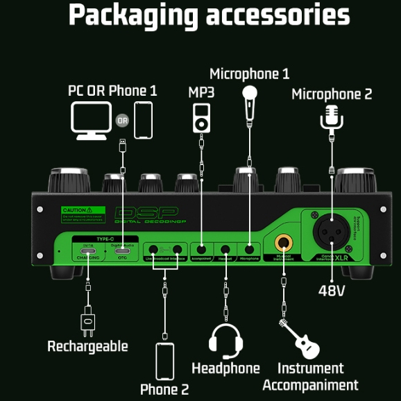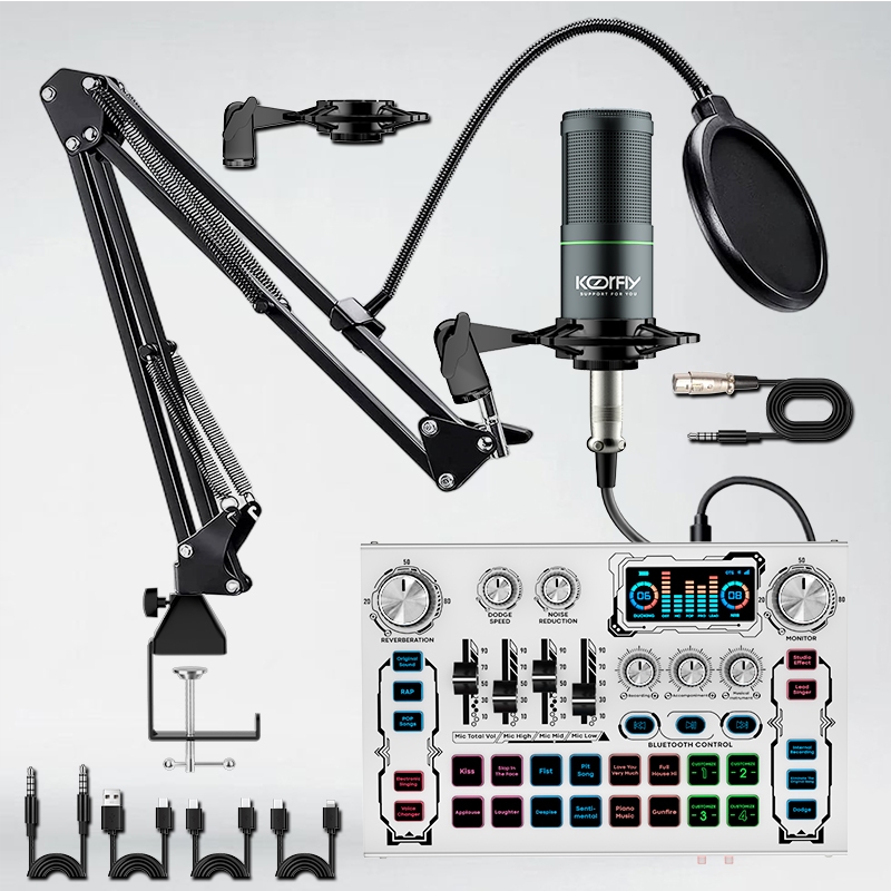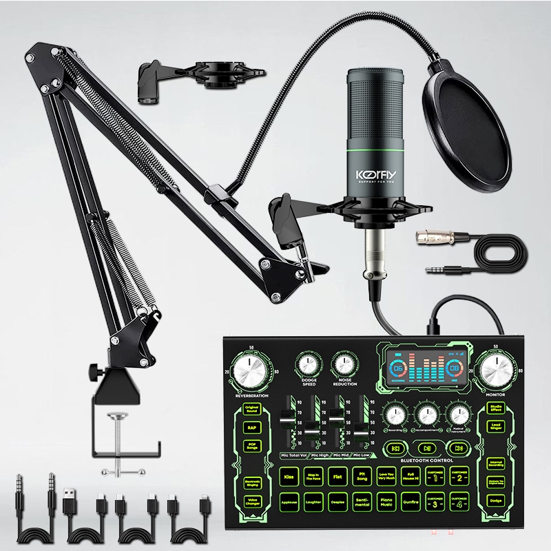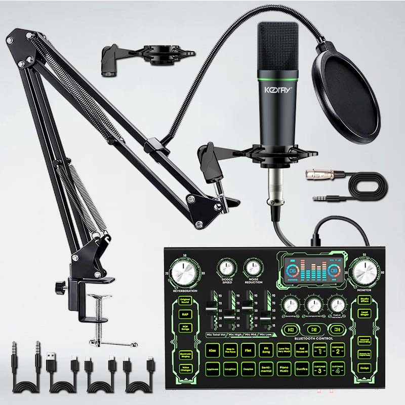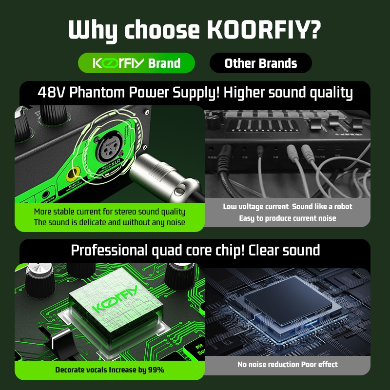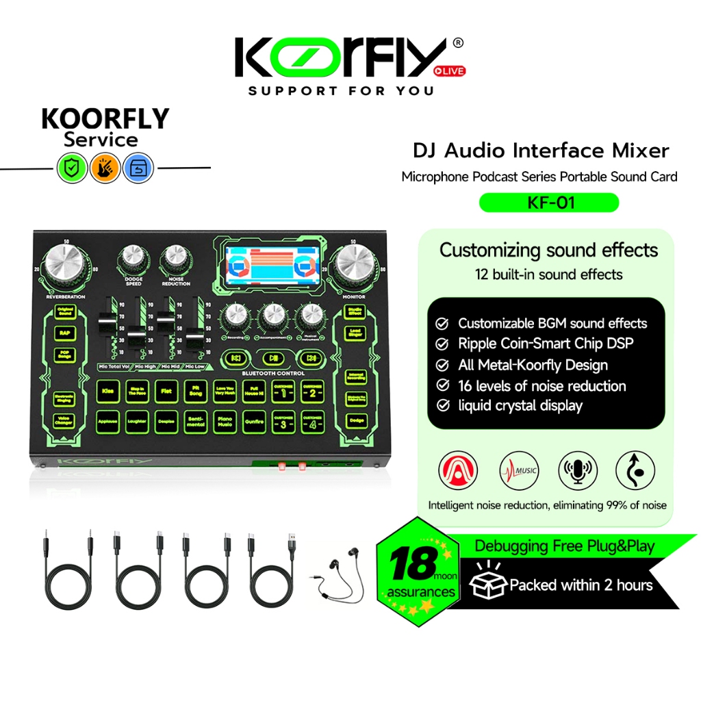 KOORFLY KF01 Sound Card ALL IN ONE Mixer 48V Capacitance Microphone Eliminate Original Songs&Custom