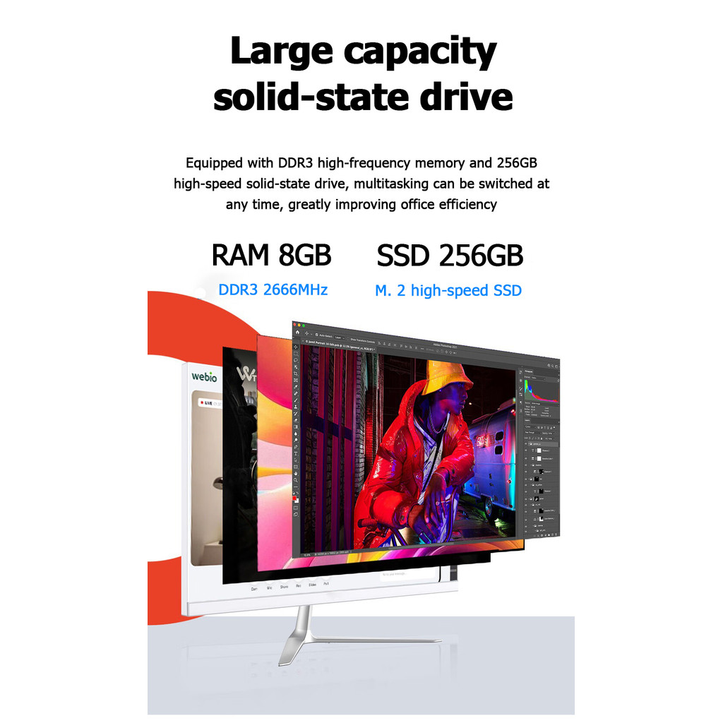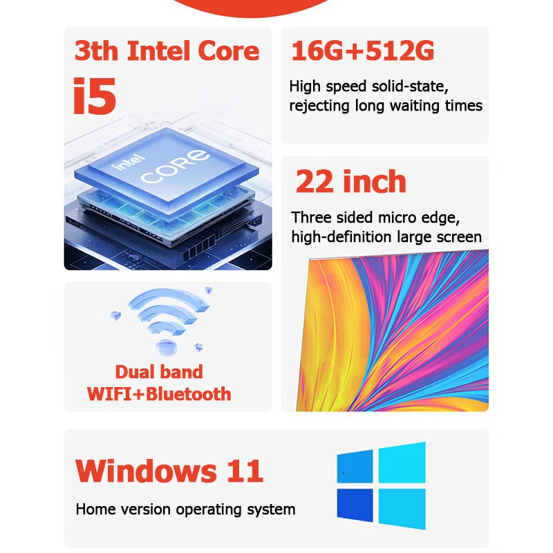 2026 all-in-one desktop computer 22 inch complete set of Intel Core i5 processor 8GB RAM 256GB SSD, suitable for home/office/gaming IPS 1920 * 1080 large screen high