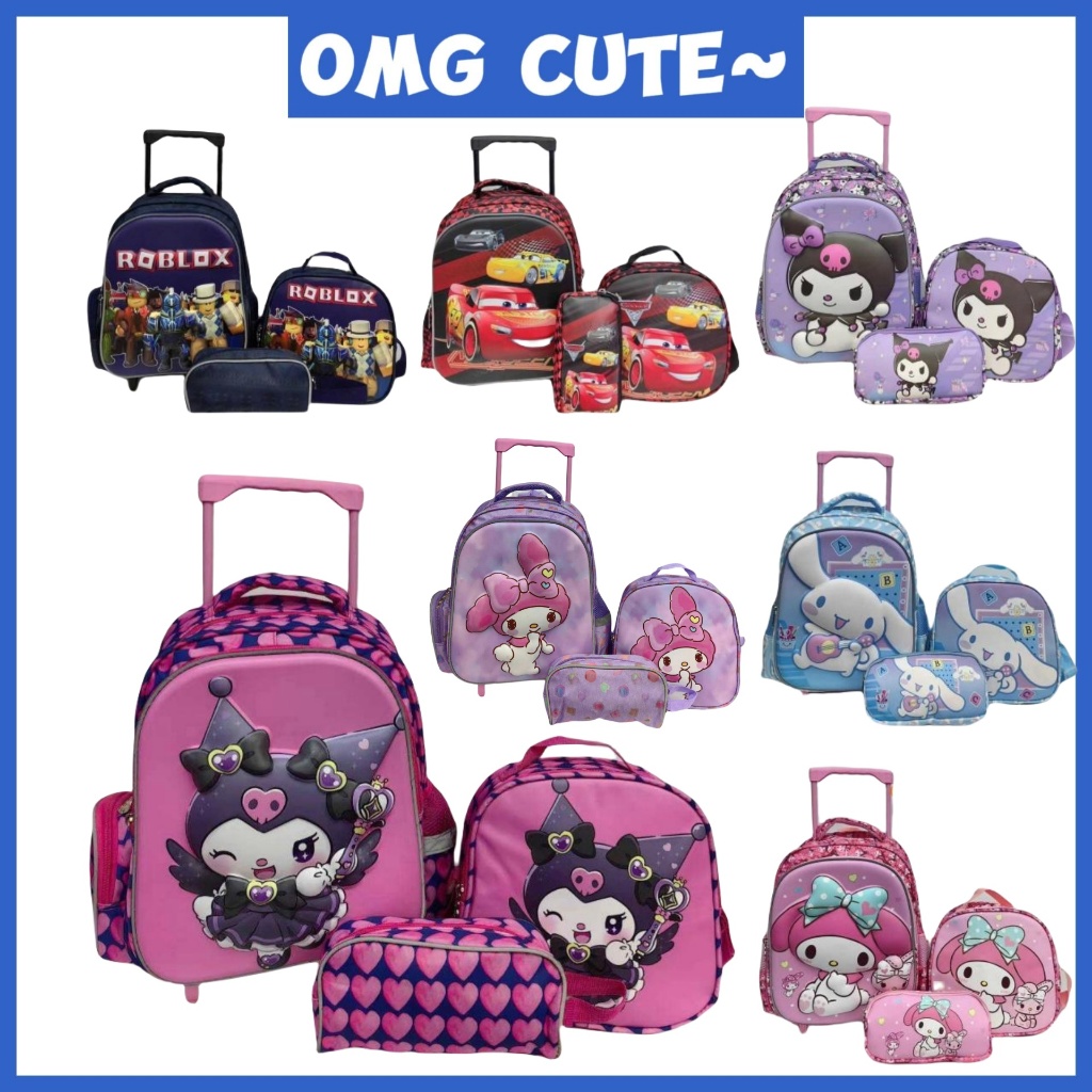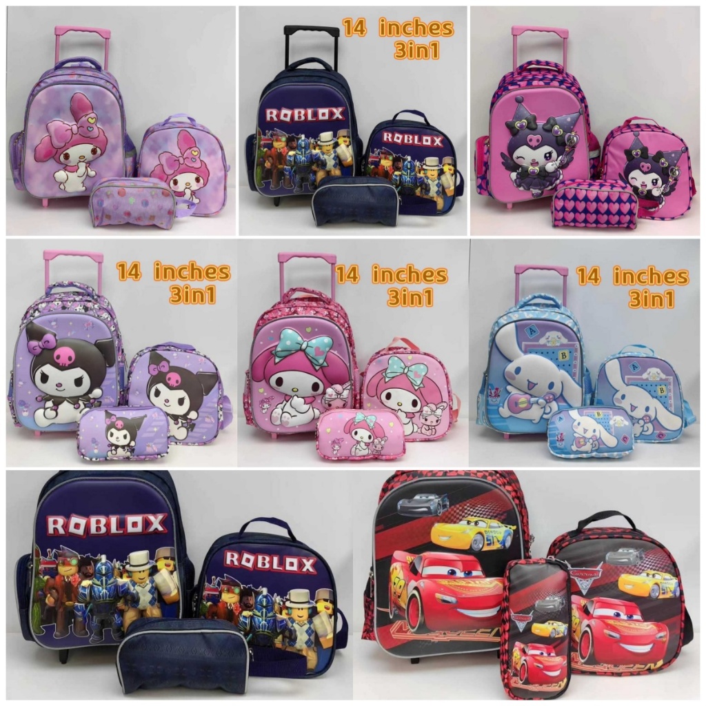 2025 NEW Character Kuromi 3in1 Trolleybag 14 Inche with lunchbag and pencil case ROBLOX trolley bag
