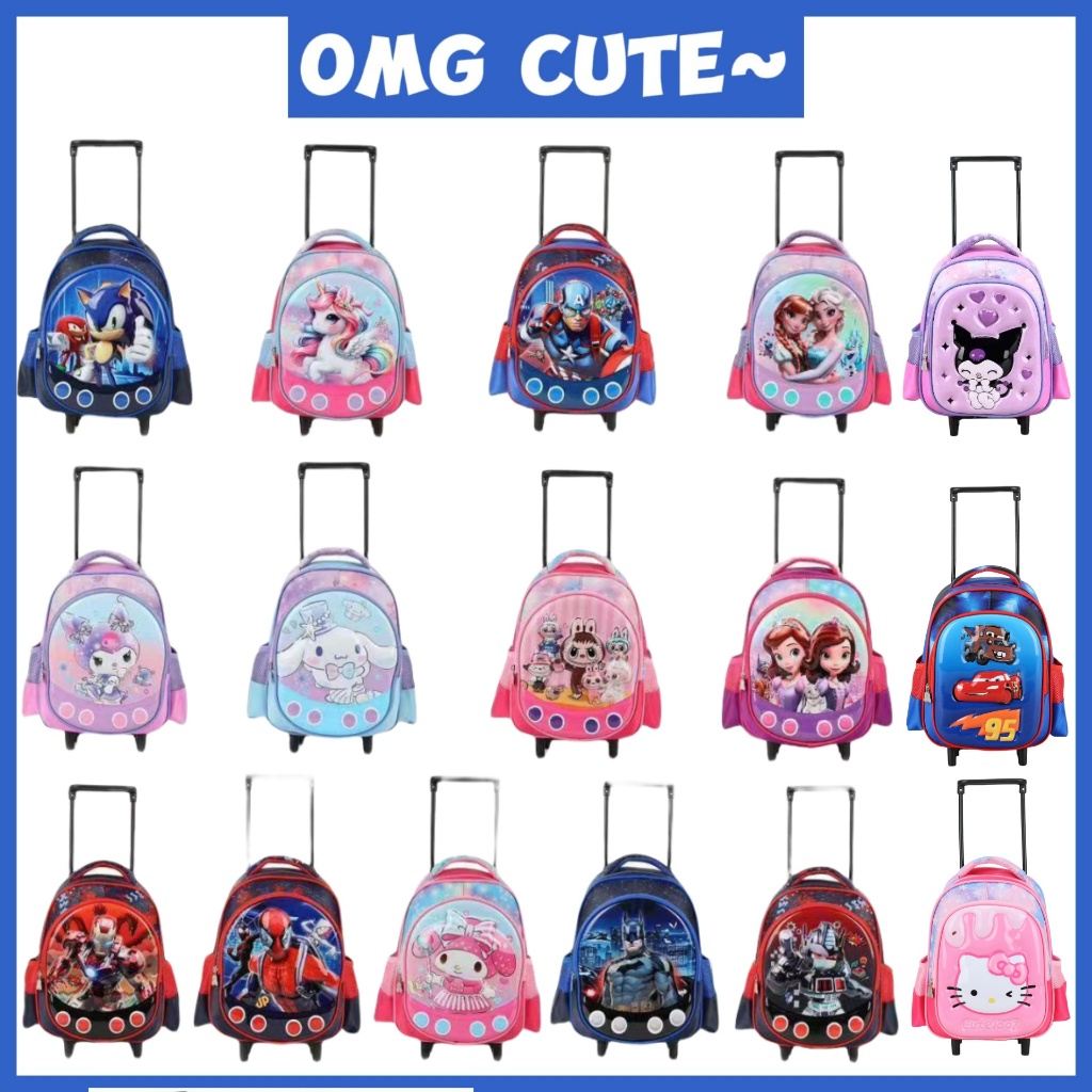 2025 New Cute Roblox Character Kuromi Trolley Bag Spiderman Nursery 6D School Bag 12inches