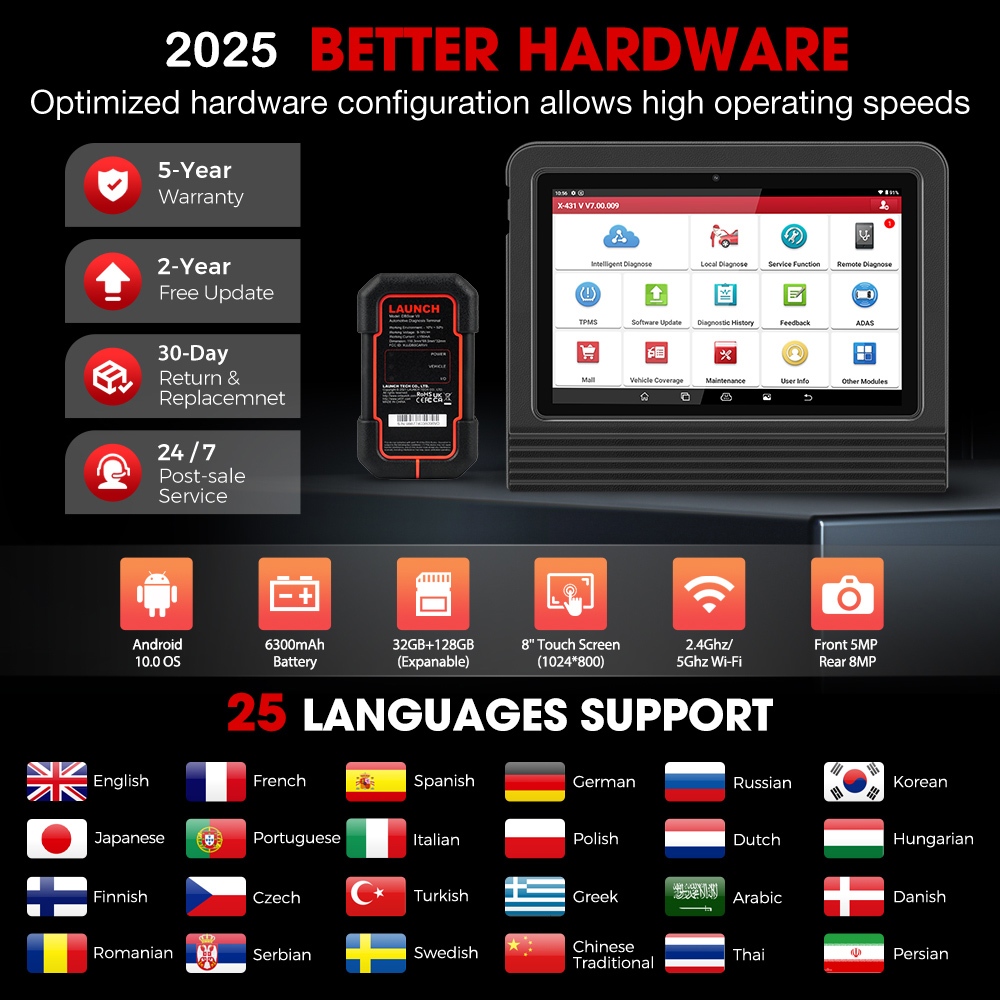 2025 Newest LAUNCH X431 V PRO 5.0 OBD2 Diagnostic Scanner Automotive OBD Code Reader Professional Car Scan Tool PK X431 PRO