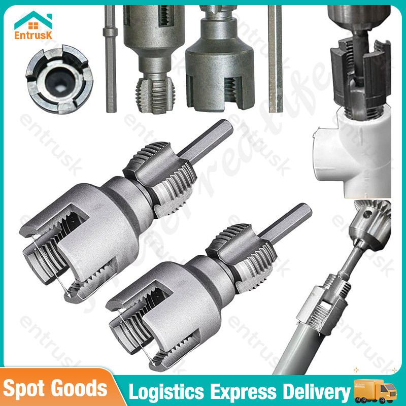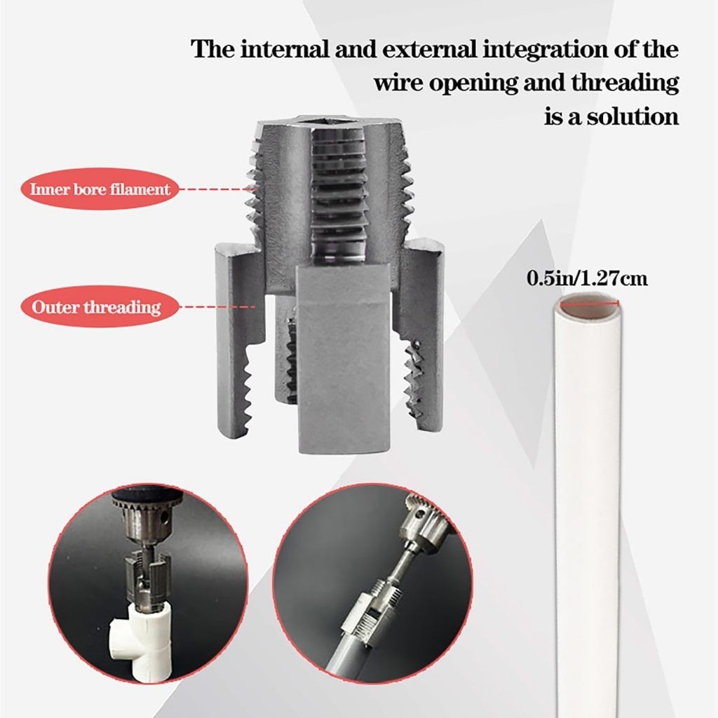 2025 Pipe Thread Cutting Tool,Electric Drill Compatible PVC Pipe Threader Kit, 1/2'' 3/4'' ET
