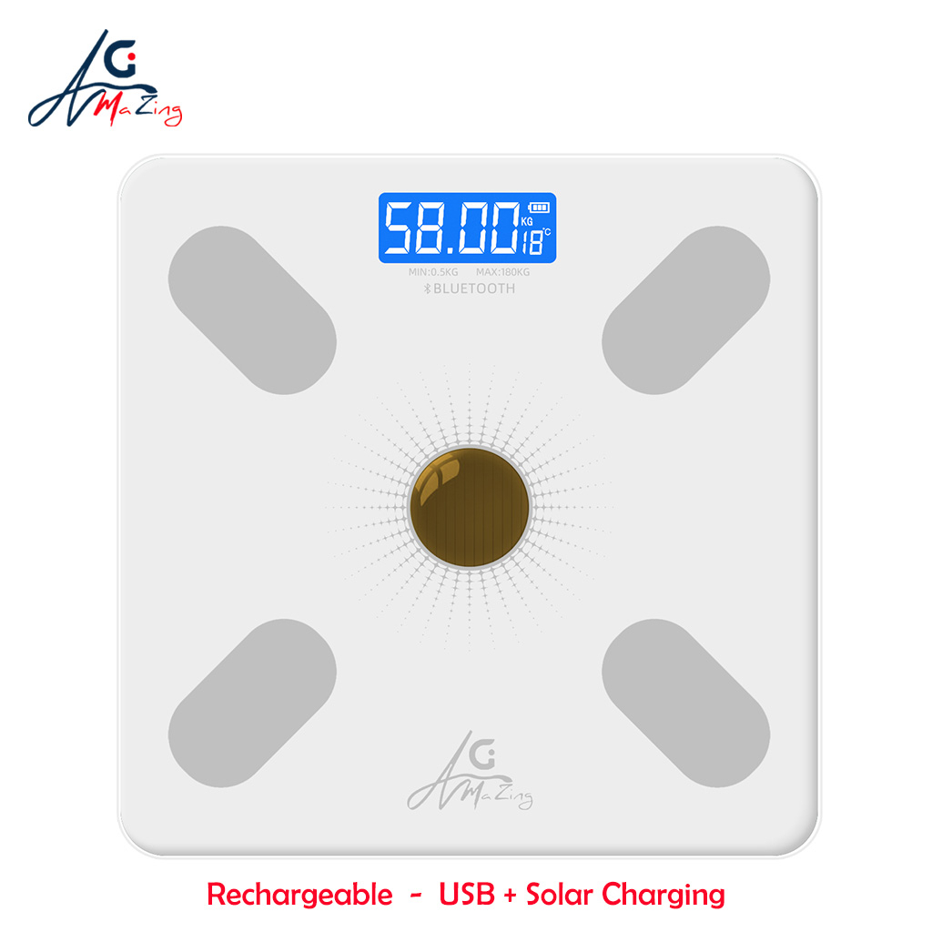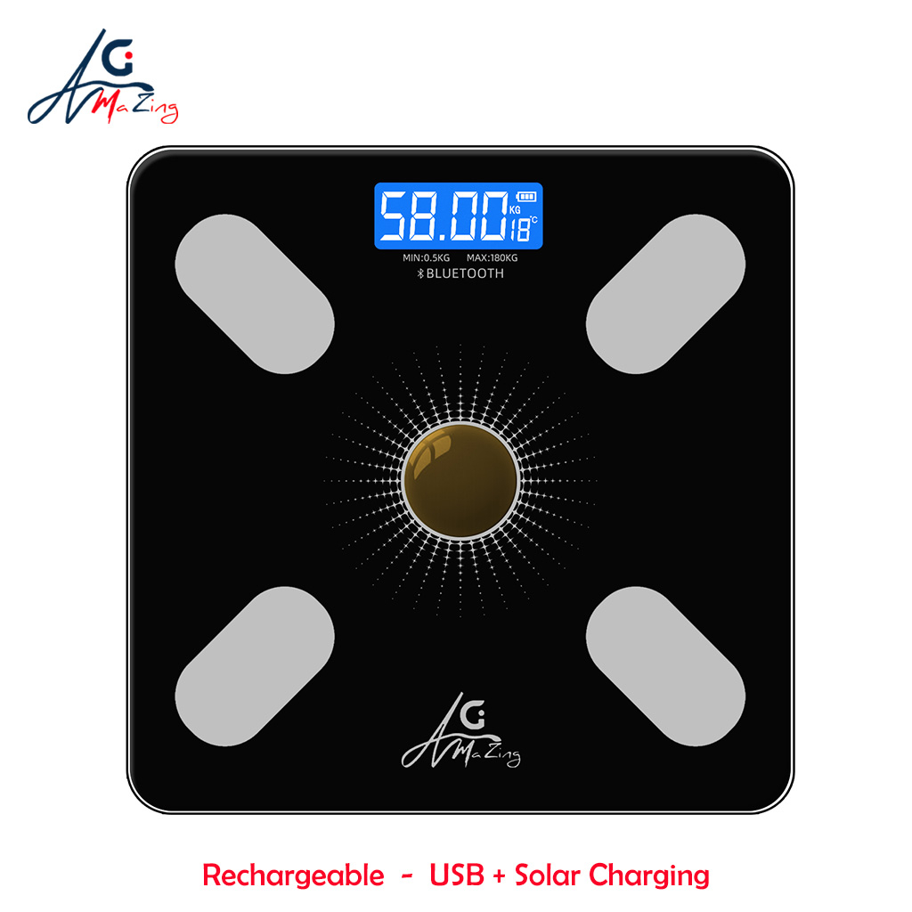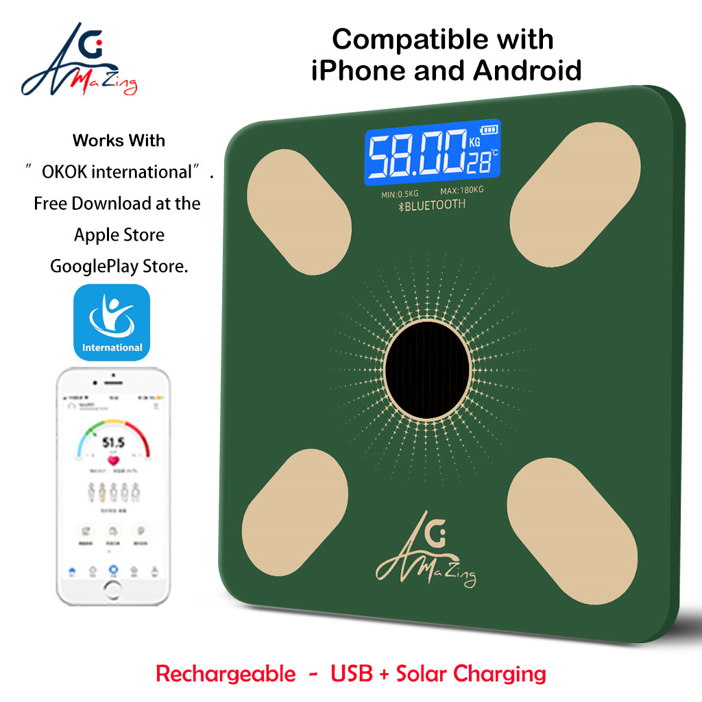 2025 Rechargeable And Solar Smart Digital Scale Weight Scale, Bathroom BMI Smart Wireless Bluetooth.
