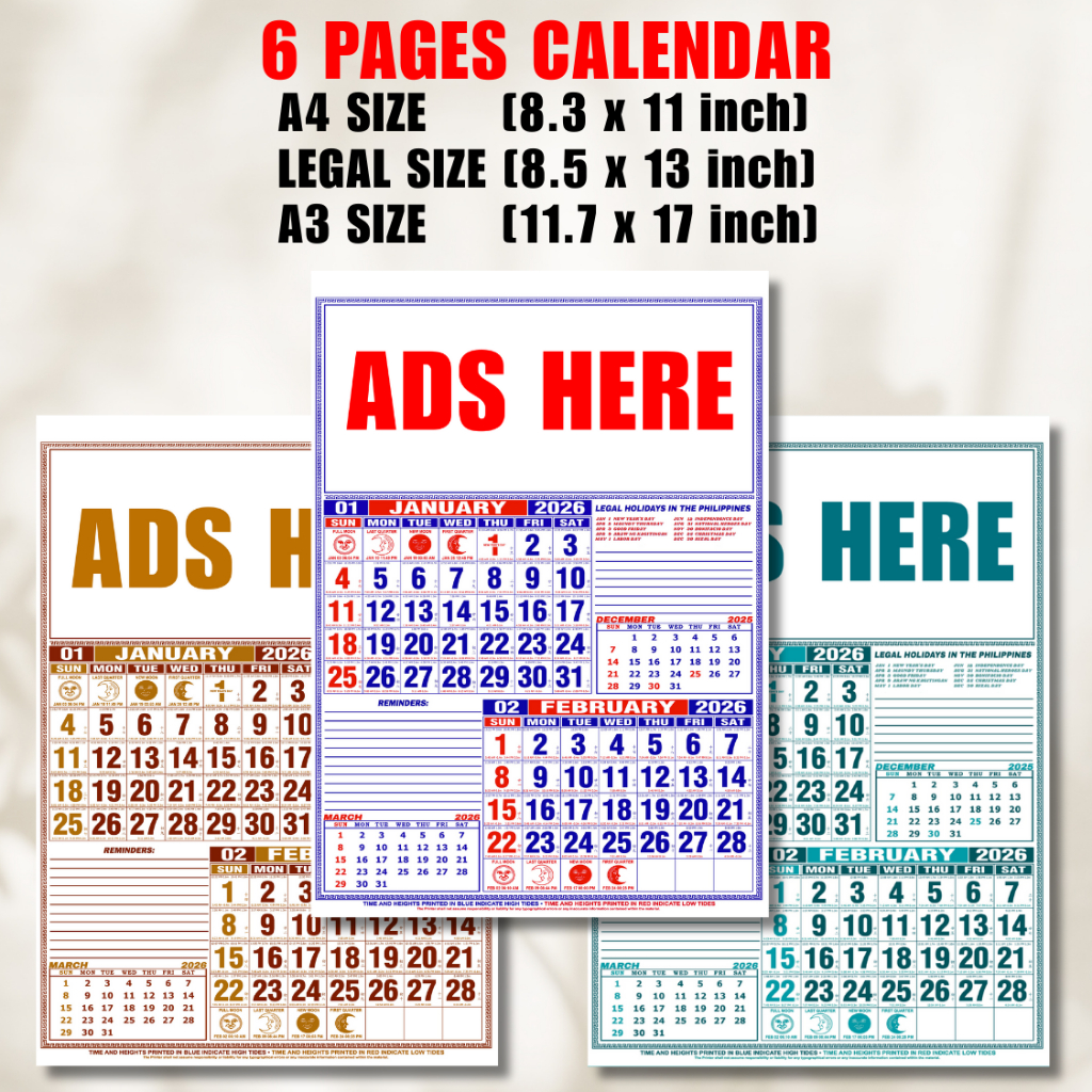 2026 COMMERCIAL CALENDAR WITH [LOW TIDE AND HIGH TIDE] 2026