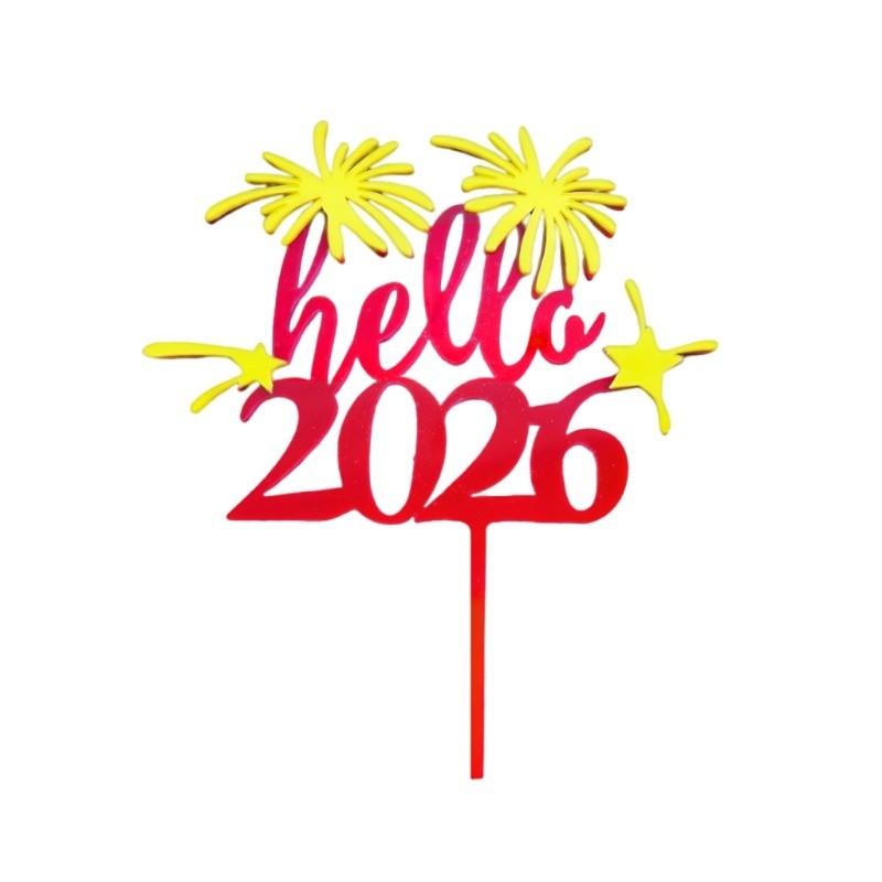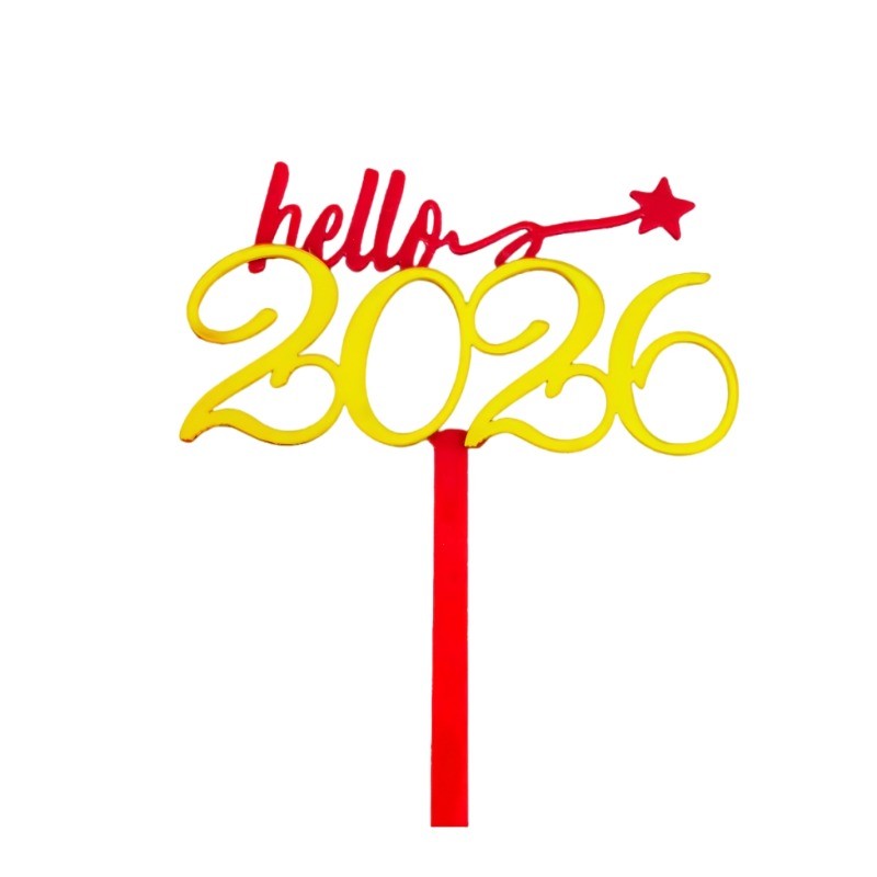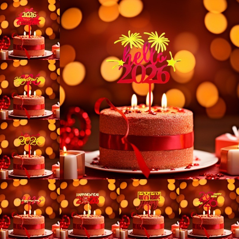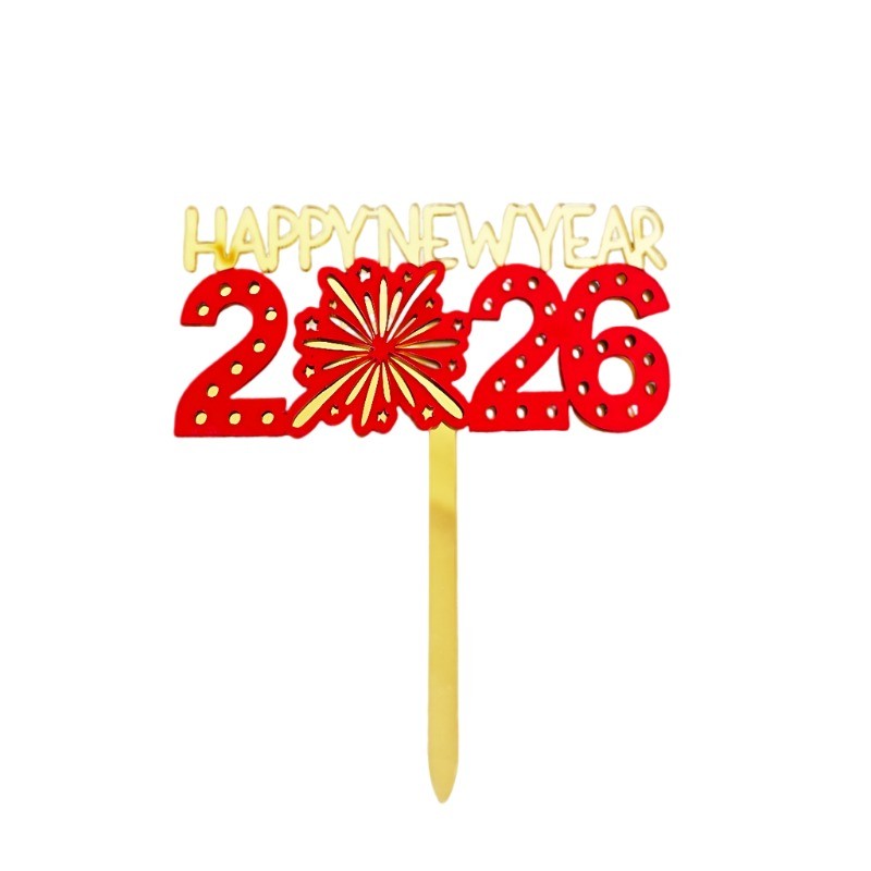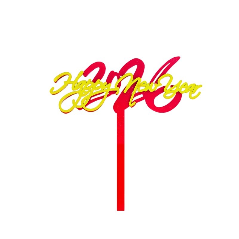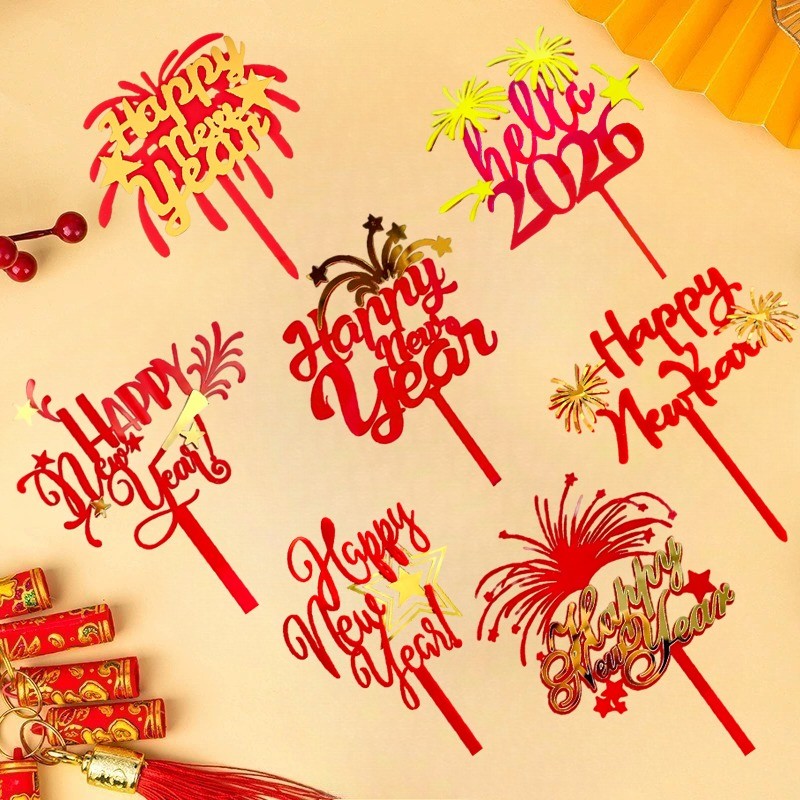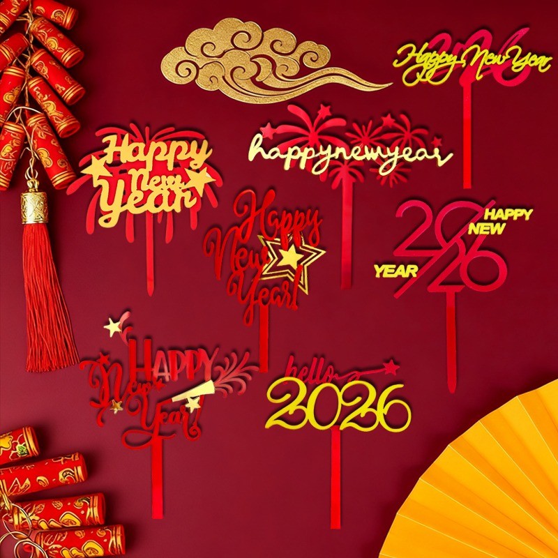 2026 Happy New Year Acrylic Cake Topper Welcome Theme Cake Decoration Red Gold Double Layer Acrylic Topper