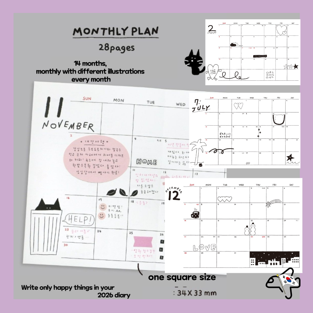 2026 Iconic Doodle Diary/2026 Planner Diary Set/Diary+Stickers/2026 Scheduler/Korean Planner/ Monthly Planner Diary/Weekly Planner Diary