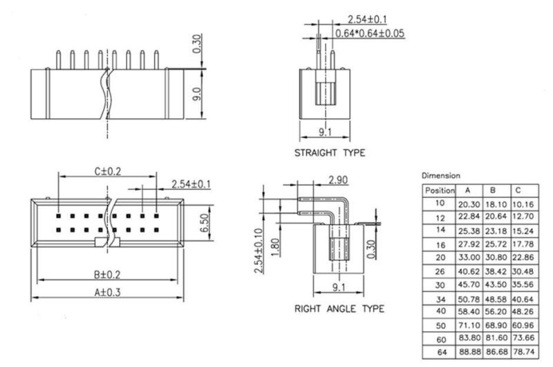 20PCS 2.54mm DC3 6/8/10/14/16/20/26/30/34/40Pin 2x3/4/5/7/20Pin Straight Male Shrouded PCB IDC Socket Box Header JTAG