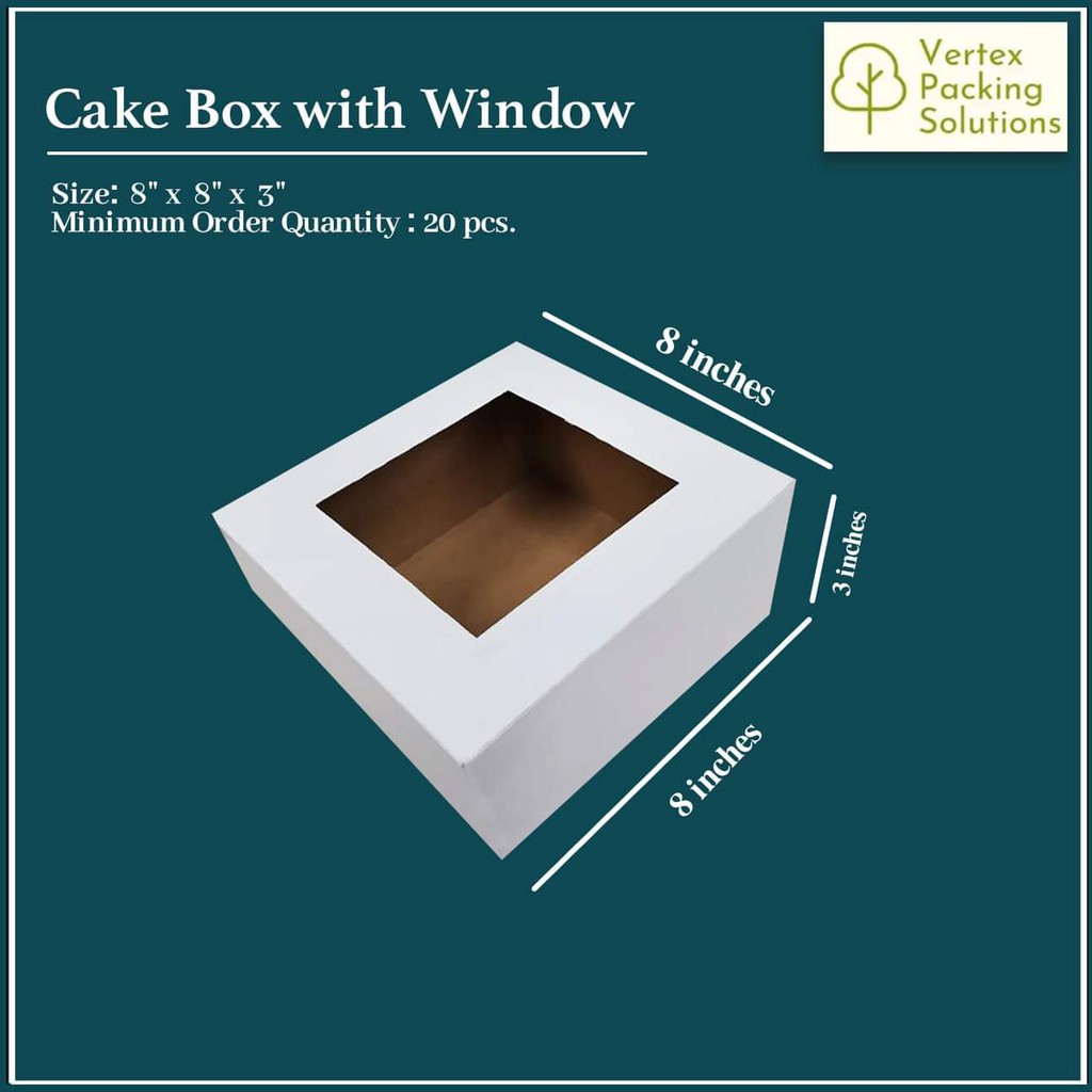 20PCS Cake and Pastry Box 8x8x3 with Window. For cake, donuts, pastries, desserts packaging.