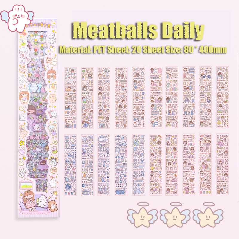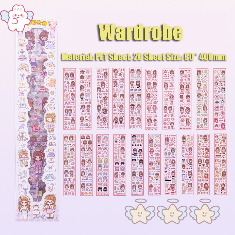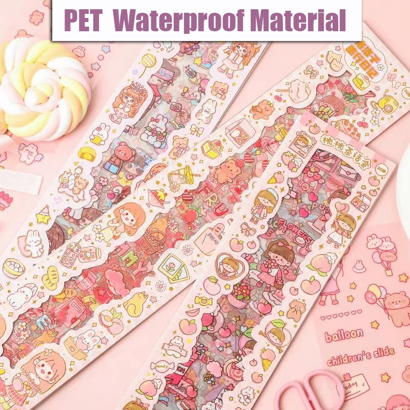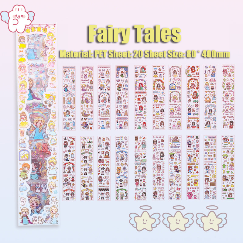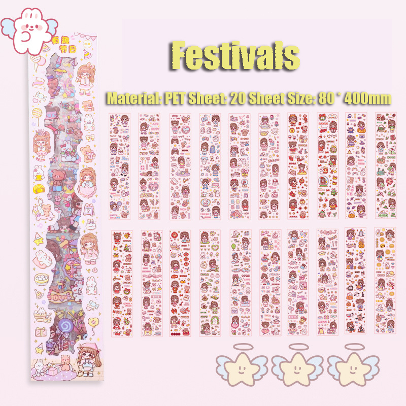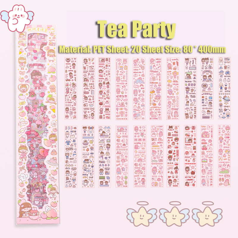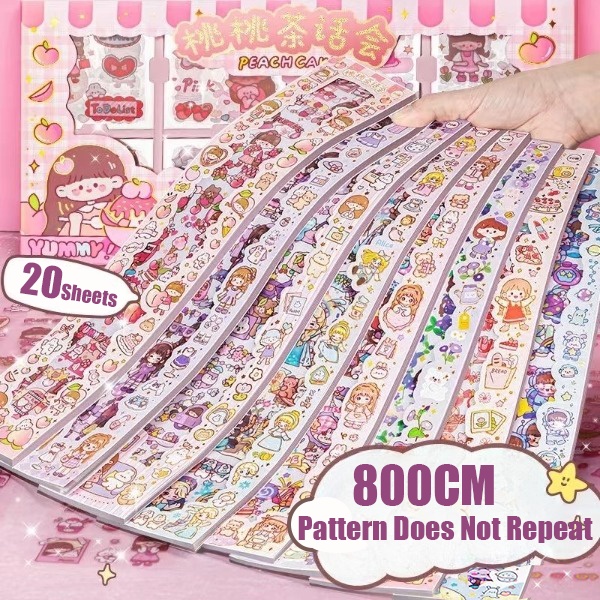 20PCS Cartoon Cute Long Strip Ledger Sticker Waterproof Sticker Set Mobile Phone Decoration Sticker