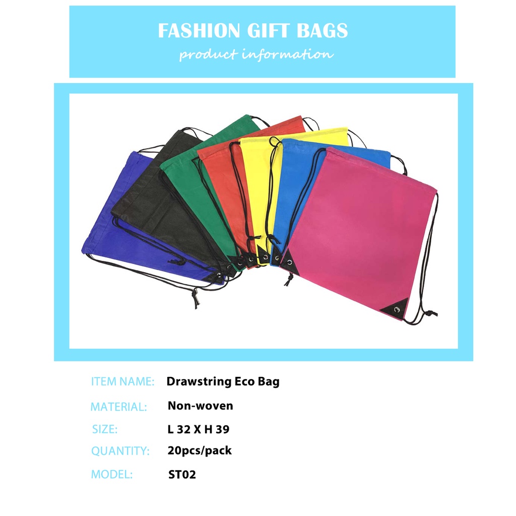 20PCS Drawstring Bag Backpack Plain Non-woven String Bag Eco Bag Storage Organizer String Bag #ST02