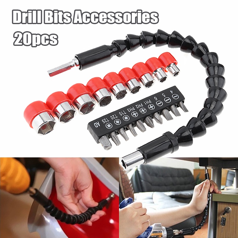 20PCS Flexible Drill Extension Hex Soft Shaft Universal Nut Driver Drill Bit Set Screwdriver Bit Set