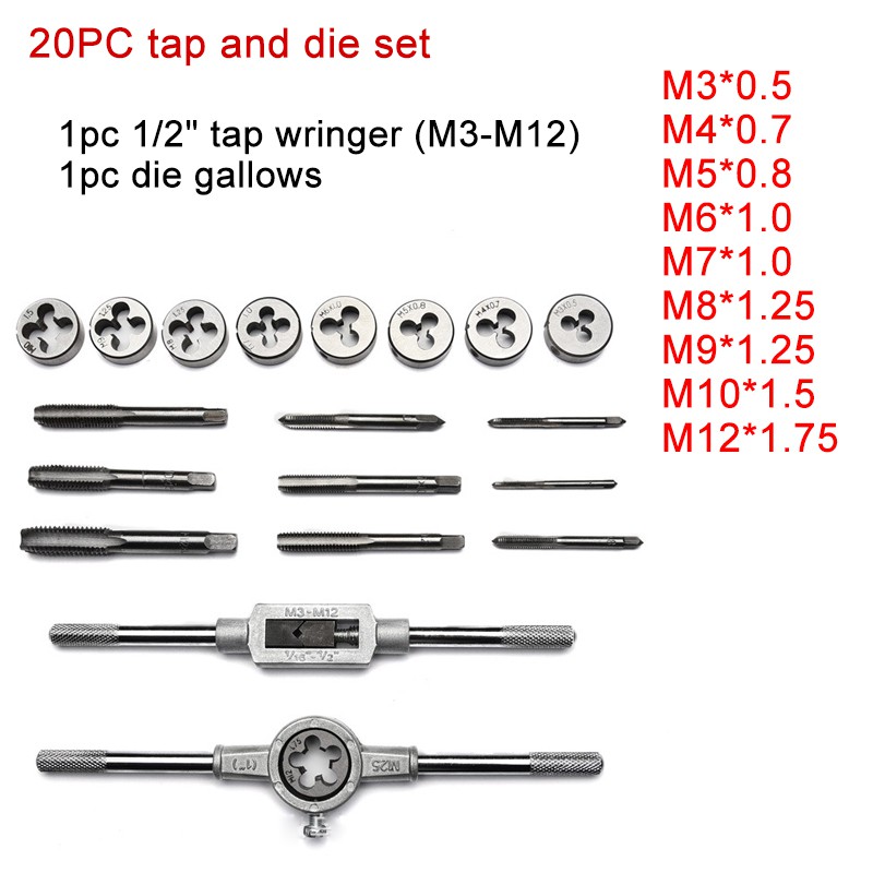 20PCS Hss Drill Bit Tap And Die Hand Top Tap Tool Set Threading Original Threader Screw Re Thread