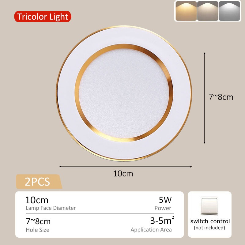 20PCS LED Pin Light Downlight Ceiling Light Led Ceiling Spot Light Tricolor 5w Round Panel Light