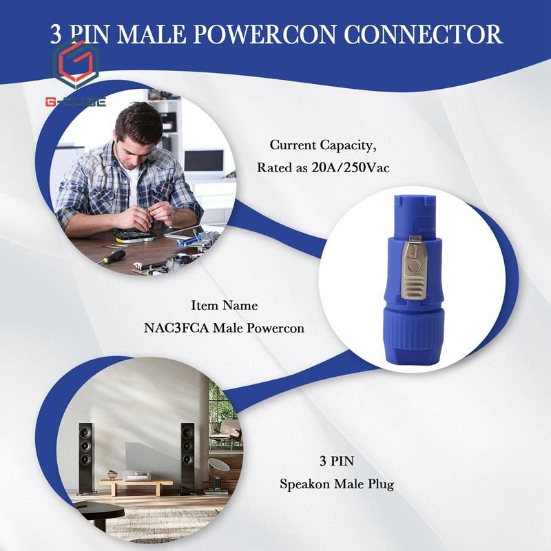 20PCS Powercon Connector NAC3FCA NAC3FCB Speakon Plug 20A 250V AC Power Plug Connector Blue and Grey White