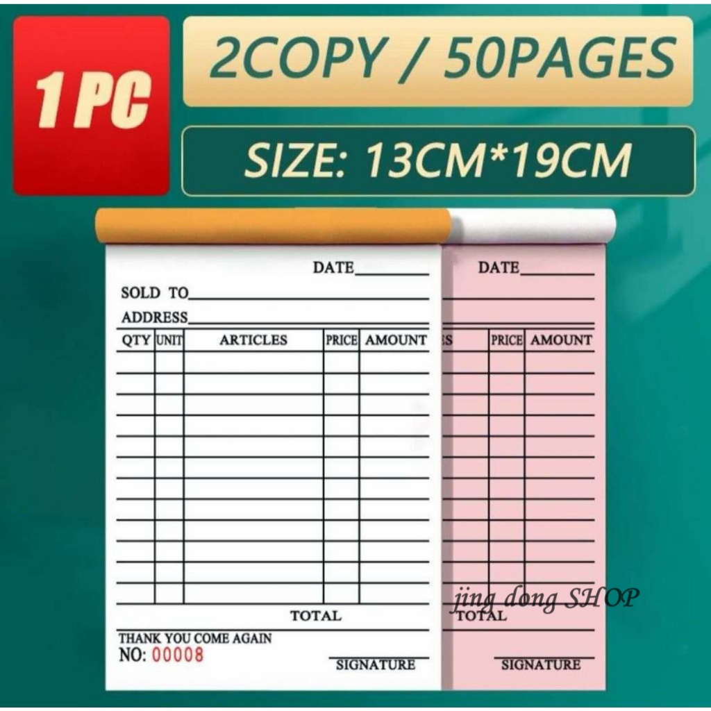 20Pads 50Pages Carbonized Receipt Paper 2Copy Duplicate Business Delivery Note resibo Blank receipt