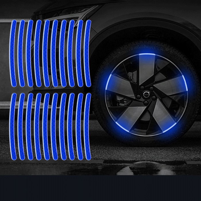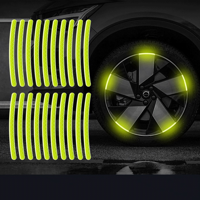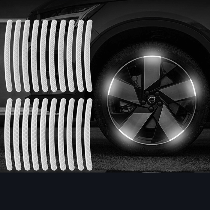 20Pcs Car Wheel Hub Reflective Sticker Tire Rim Luminous Stickers Roadway Safety Reflective Strip for Auto Motorcycle Bicycle