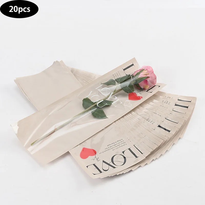 20Pcs Lot Single Rose Flower Packaging Bag Gift Wrapping Paper Wedding Floral Package Supplies Valentine's Day Weddings, anniversaries Party Decor