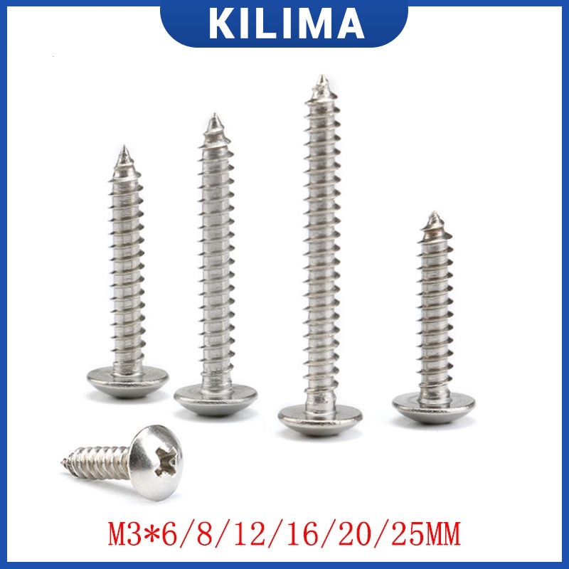 20Pcs M3 Screw M3*6-25mm Phillips Truss Head (Cross Recessed Mushroom Head) Self-Tapping Screws For Wood Furniture