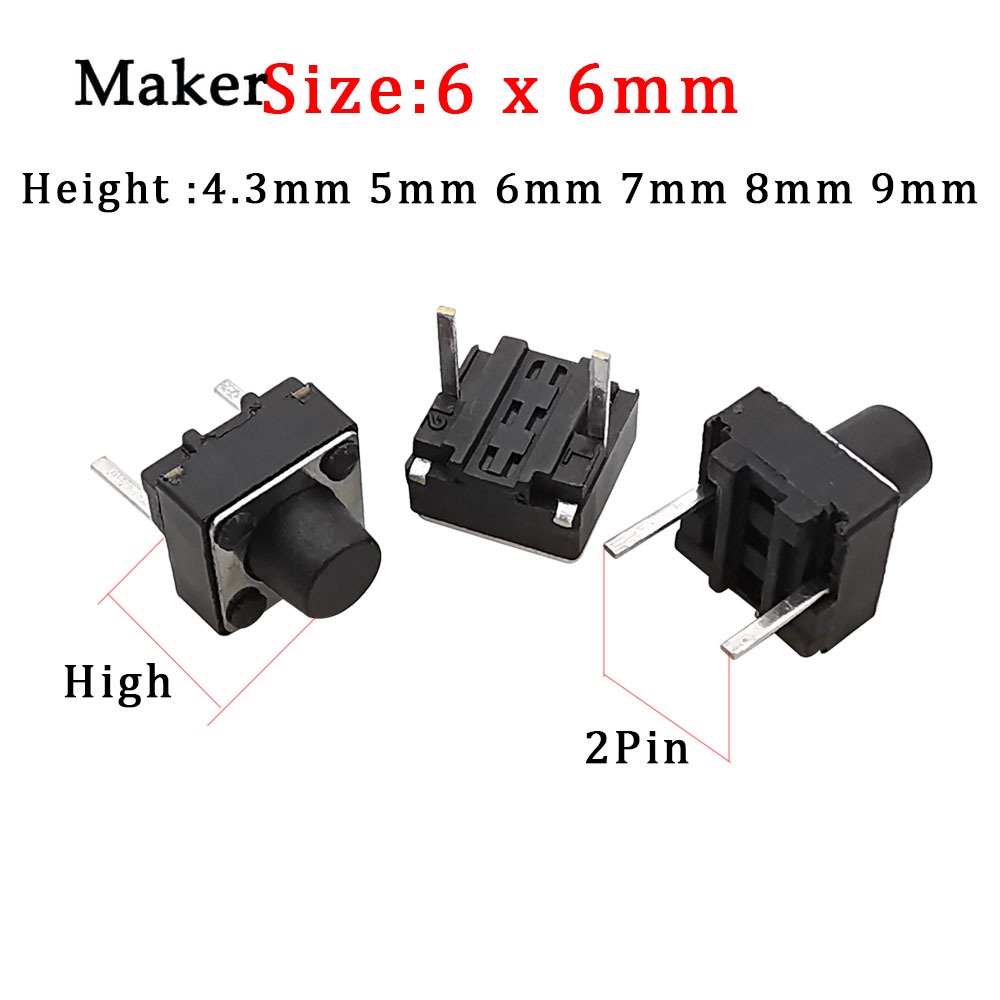 20Pcs Micro Tactile Switch Momentary Tact DIP Switch 2Pin 6 X 6mm Micro Touch Push Button Switch High 5mm 6mm 7mm 8mm 9mm