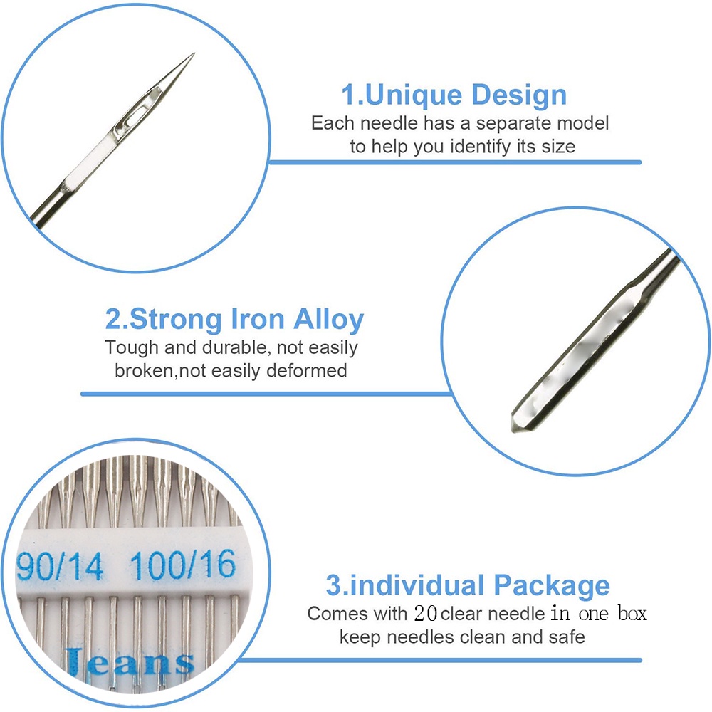 20Pcs Sewing Machine Needles Stainless Steel Jeans /universal 70/10 90/14 100/16 Sewing Needles DIY Sewing Machine Accessories