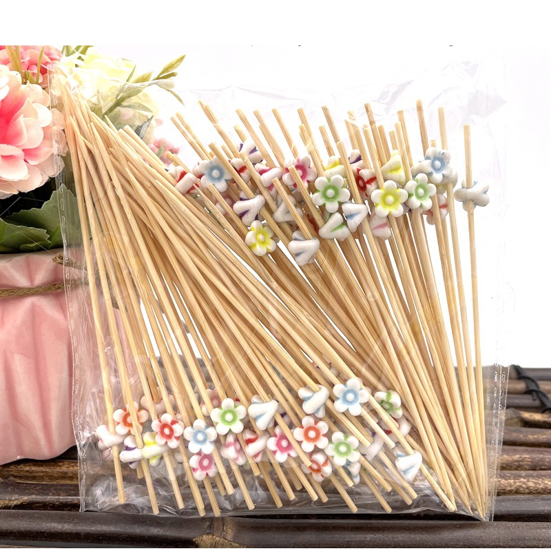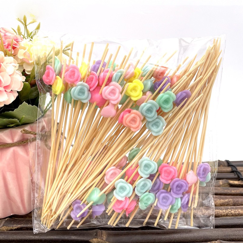 20Pcs butterfly flower Disposable Bamboo Fruit Sticks Forks Food Picks Buffet Cupcake Fruit Fork Party Cake Dessert Salad Vegetable Sticks