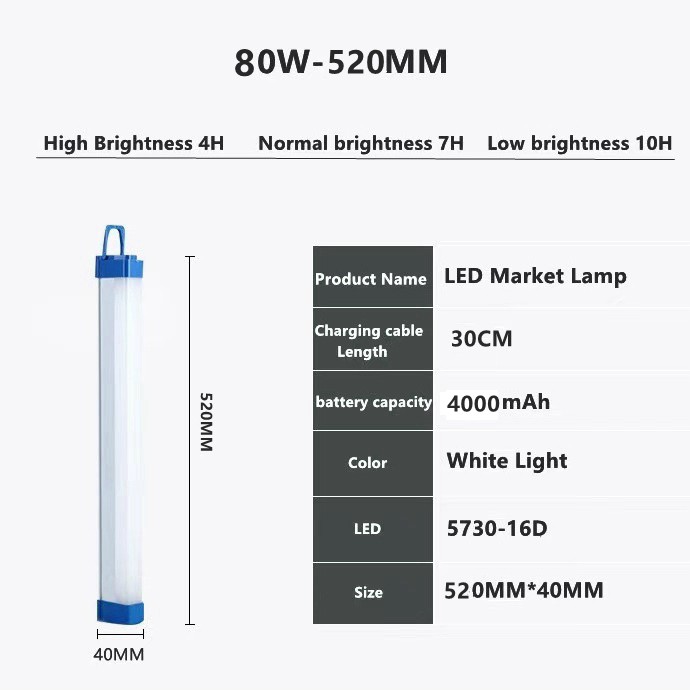 20W-80W LED Lithium Battery Night Light High Power Emergency Light USB Charging LED Night Light 3 Modes Adjusted