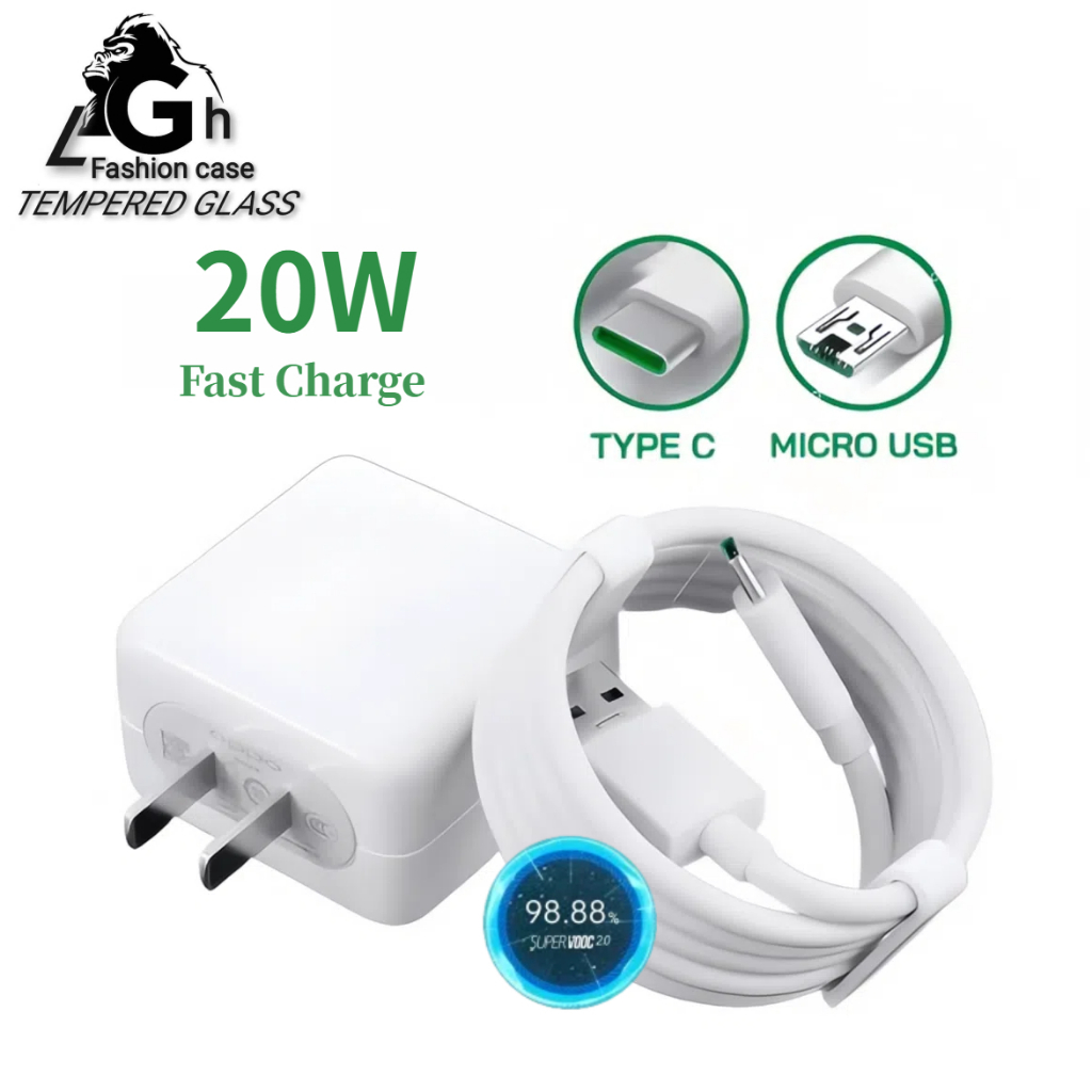 20W Super Vooc Charger Flash Charging Wall Adapter With Micro/Type C USB Cable For Oppo A5S A15 A18