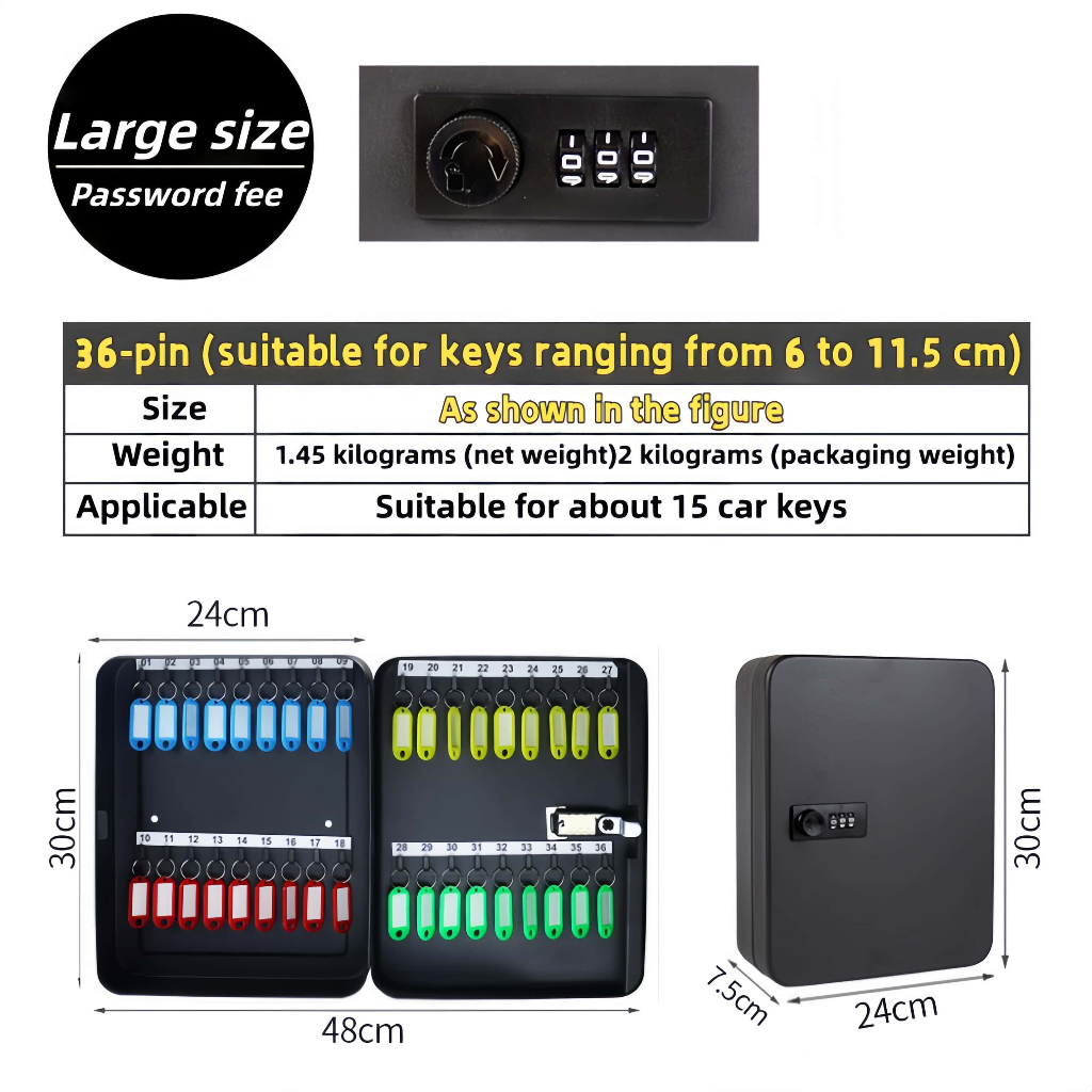 20and36 -Bit Home Wall Mounted Key Storage Box Security Password Key Safe